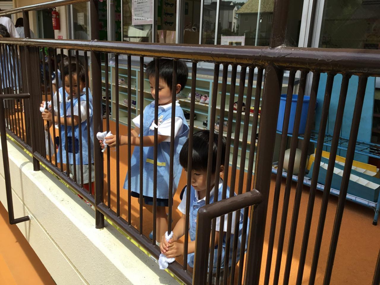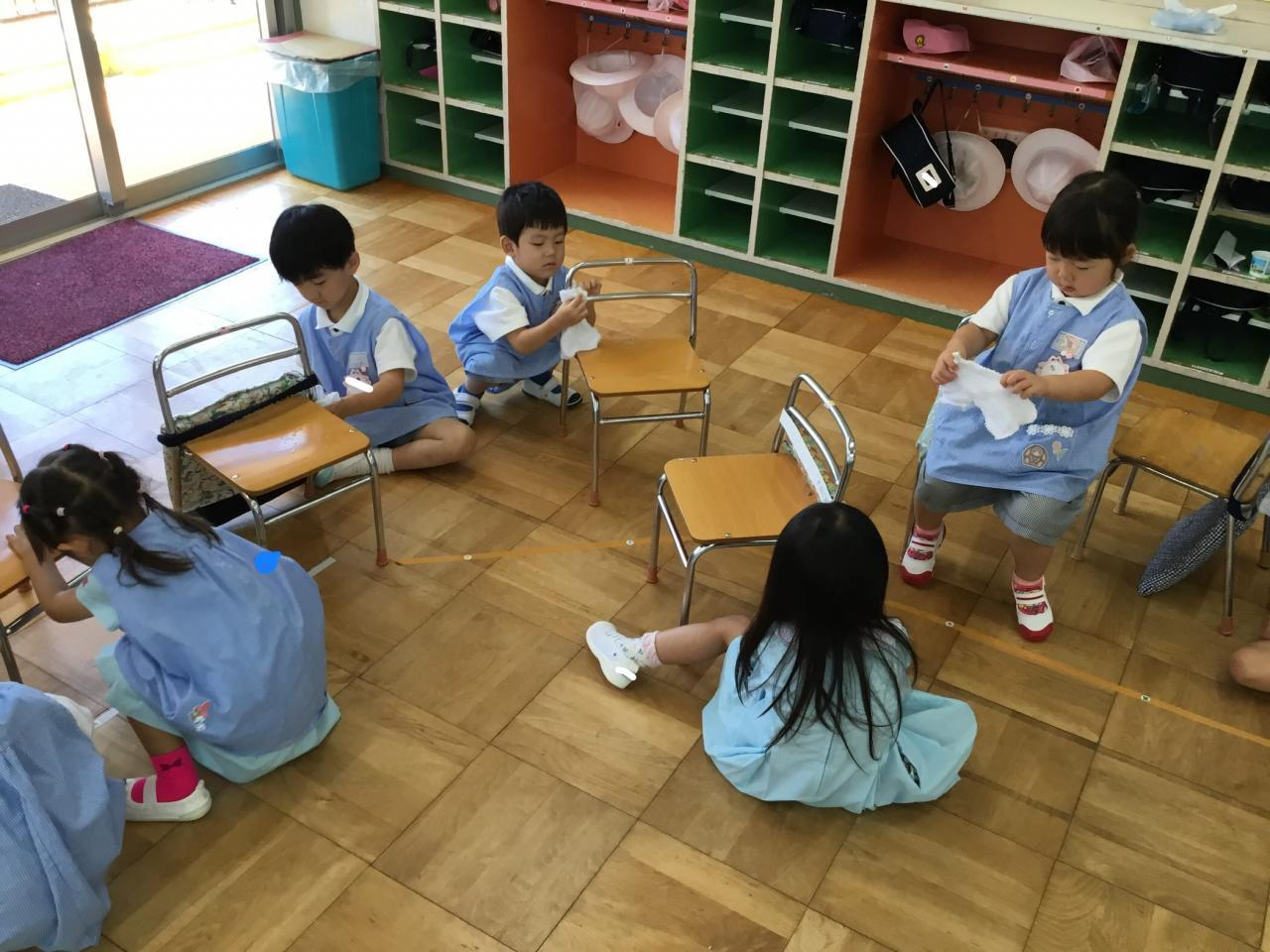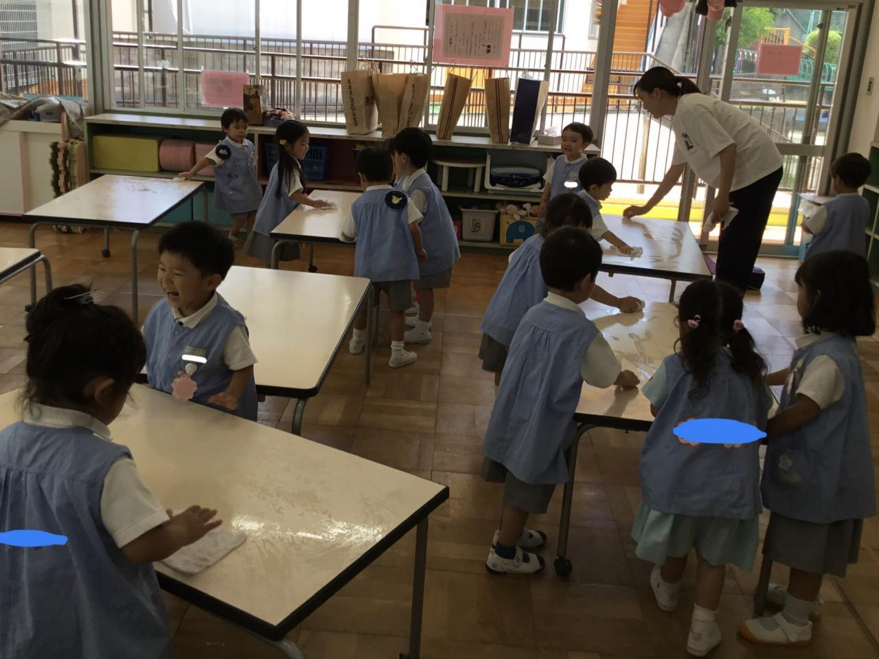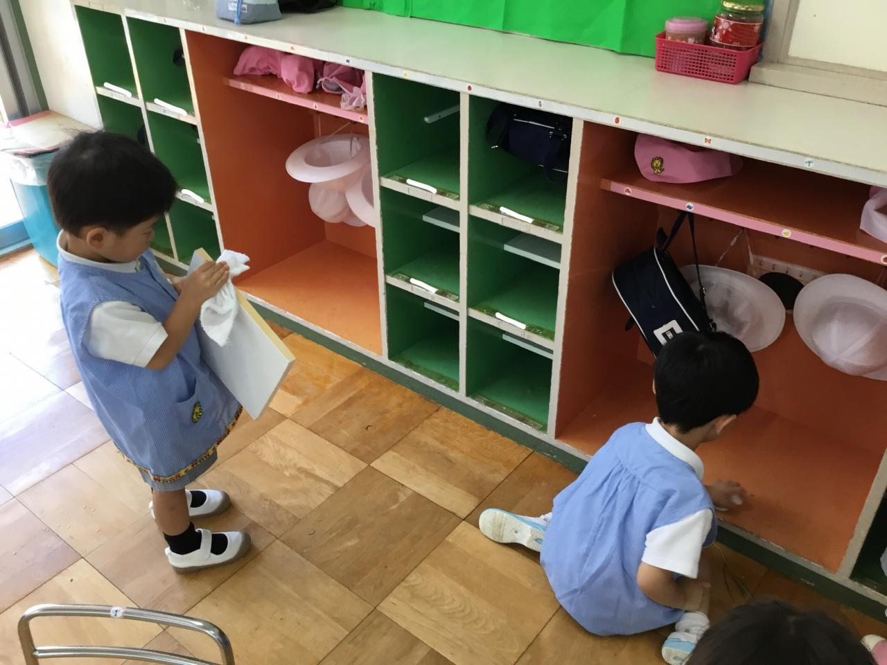 大掃除もしました。自分の椅子・ロッカー・靴箱や、みんなで使った机、廊下の柵まで!さくら組パワーでぴかぴかになりました。気持ちよく2学期を迎えられそうです☺︎