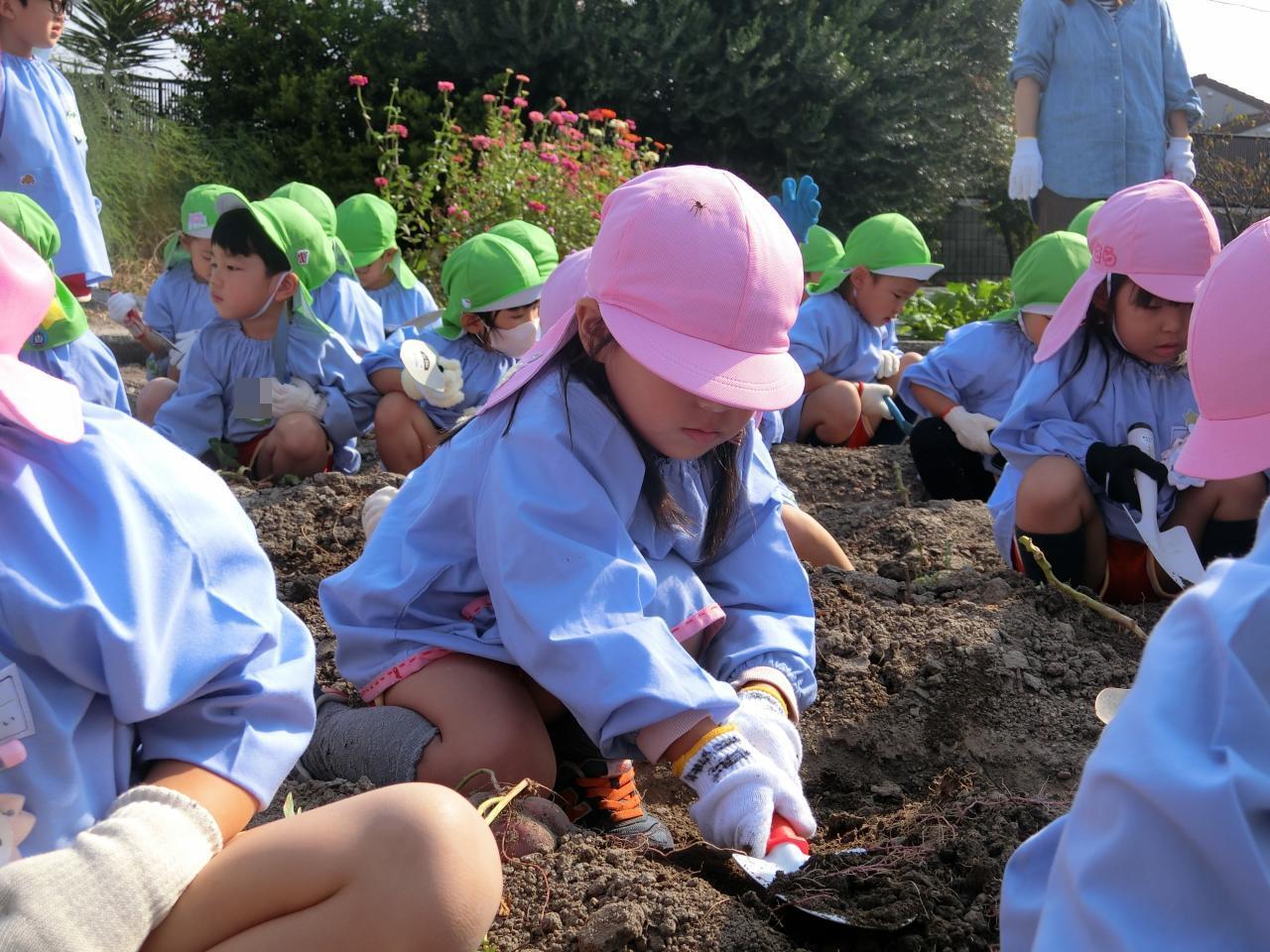 たくさんのお芋を収穫してくれるのは・・・年少組さんと、年中組さんです。