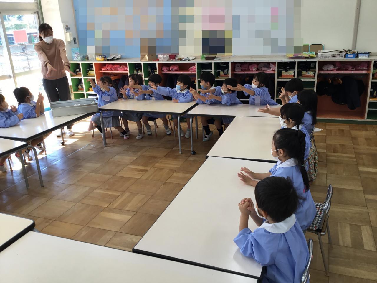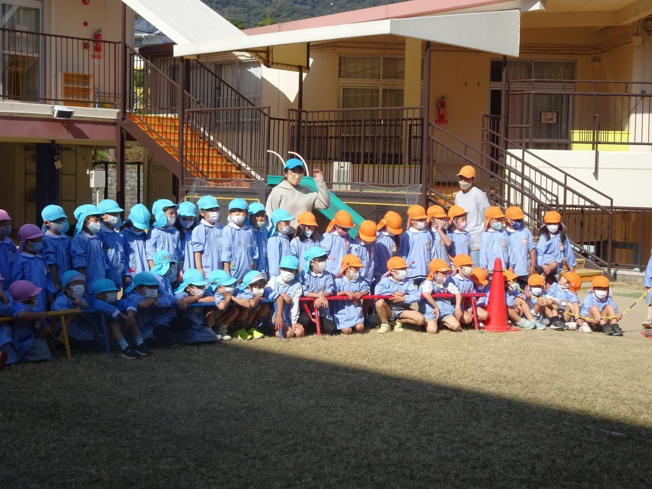 「熱いね」「ちょっと怖い」と、おそるおそる全員が園庭に集合しました。