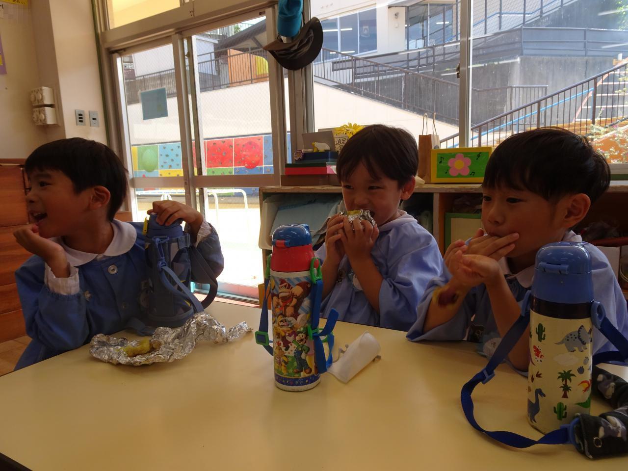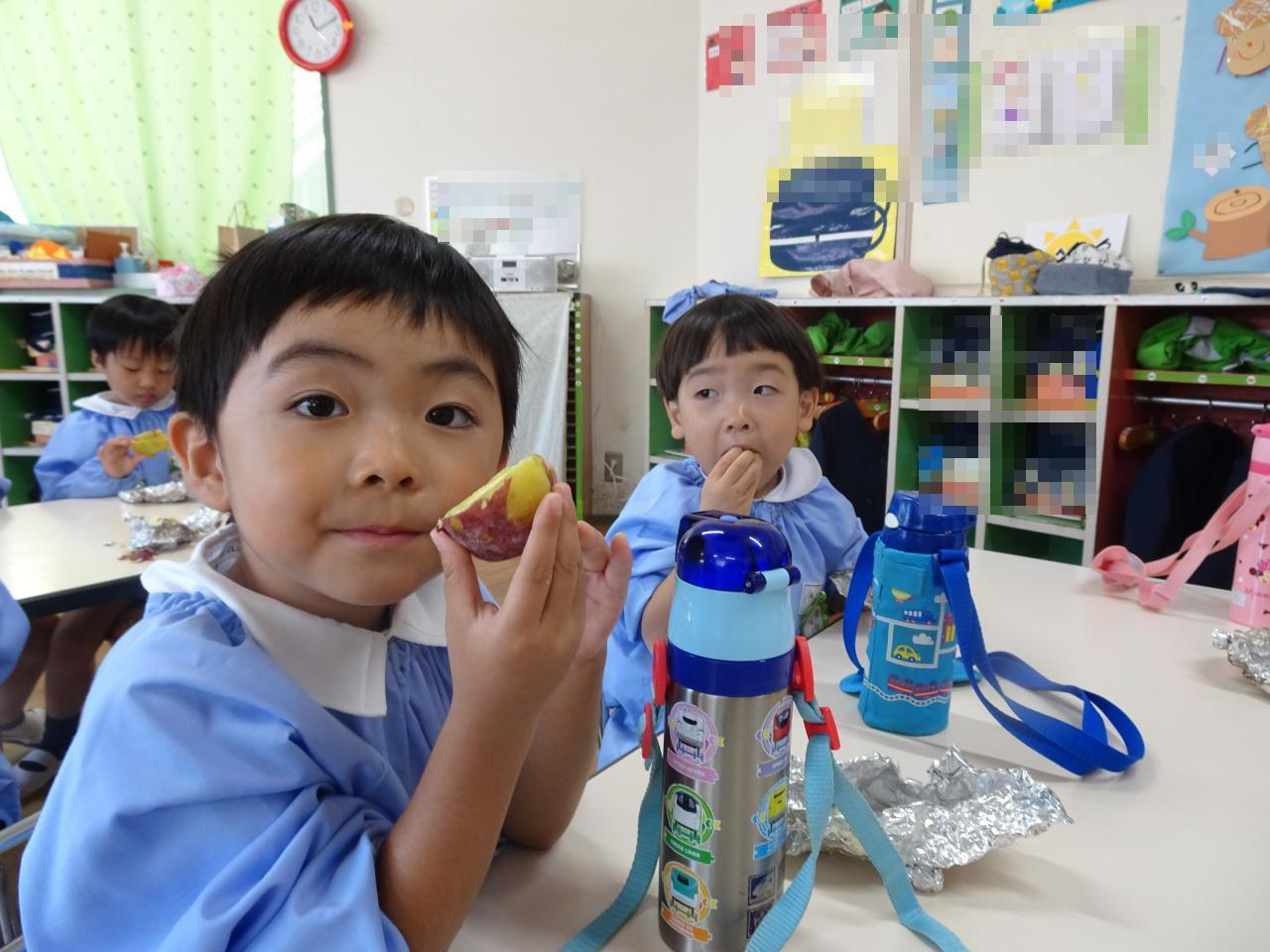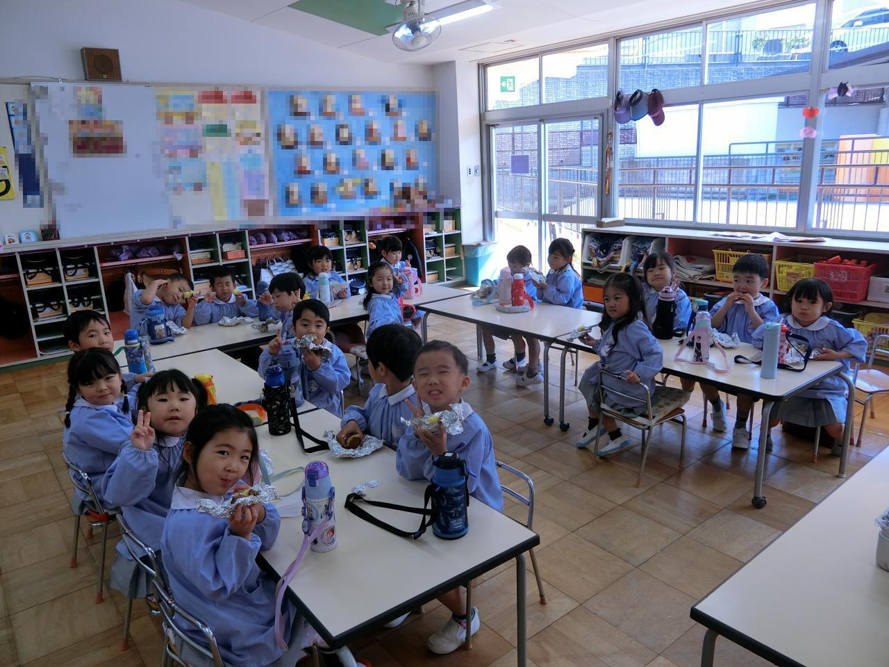 クラスに戻って、いよいよお待ちかねの焼き芋をいただきます。
