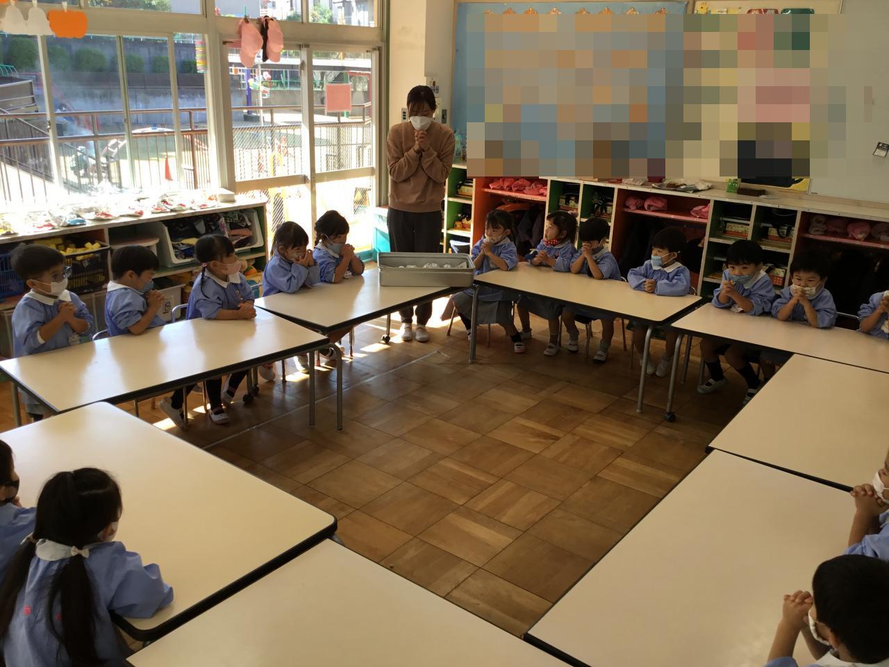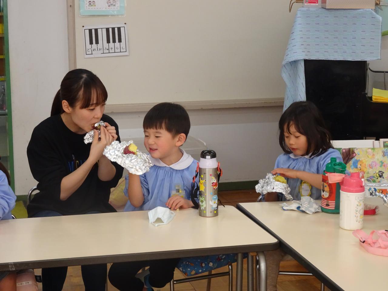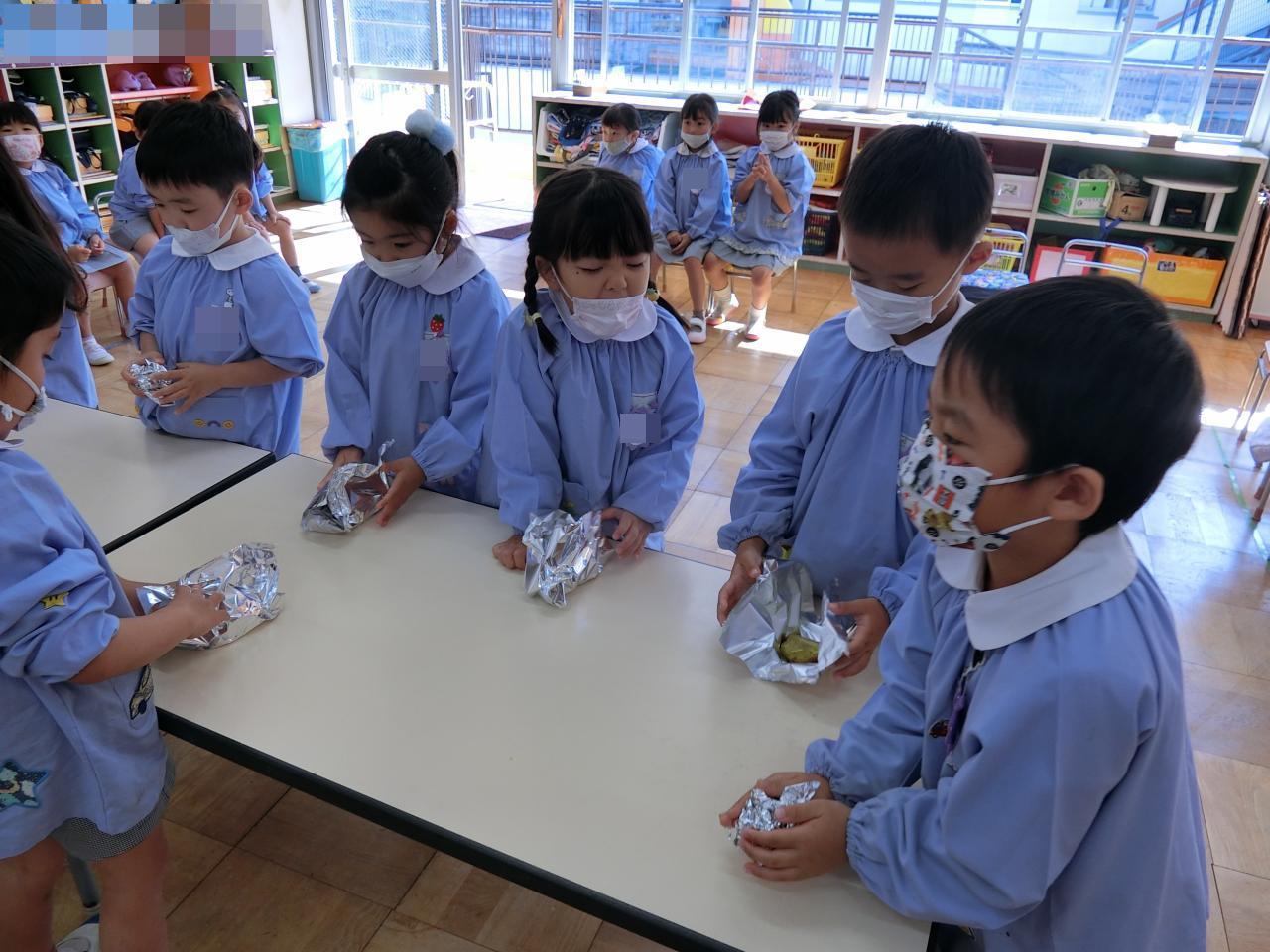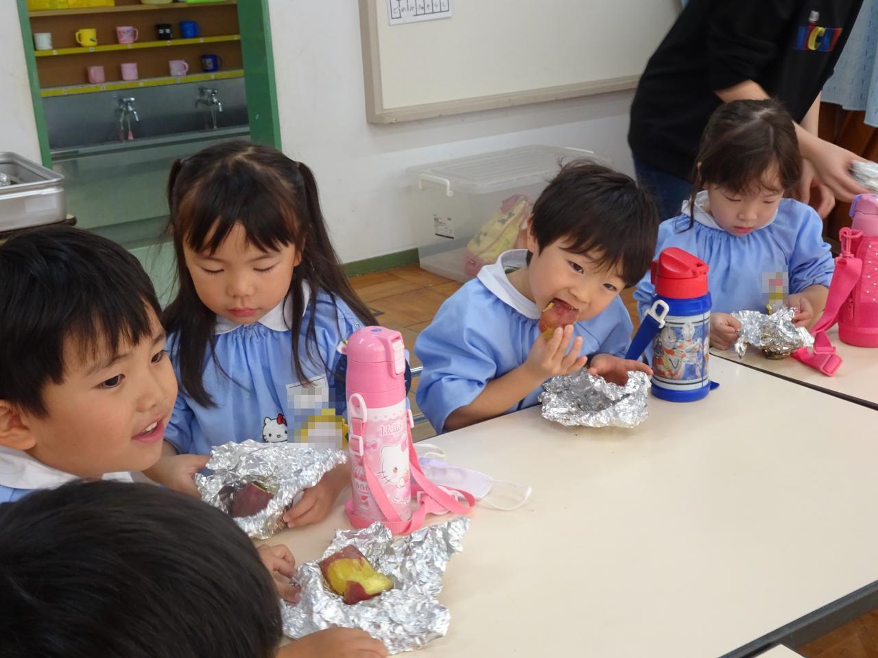 クラスに戻って、いよいよお待ちかねの焼き芋をいただきます。