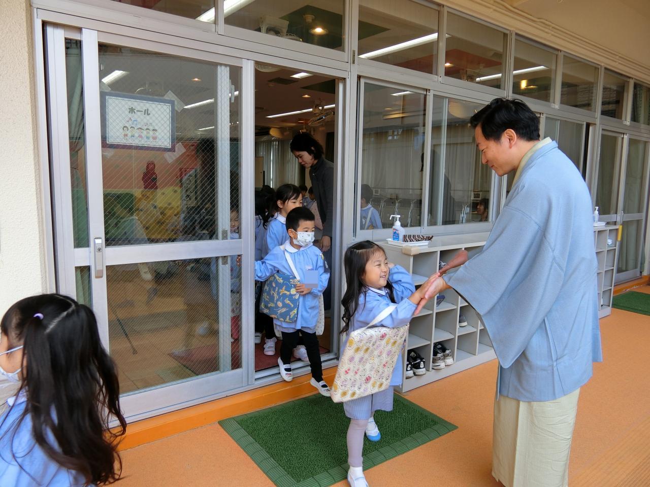 楽しかった時間はあっという間。最後は佐ん吉さんにお見送りしてもらった子どもたち🥰