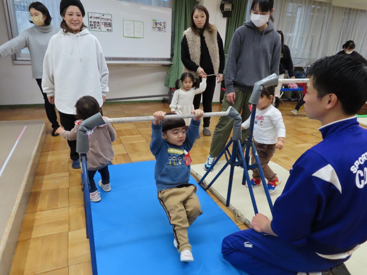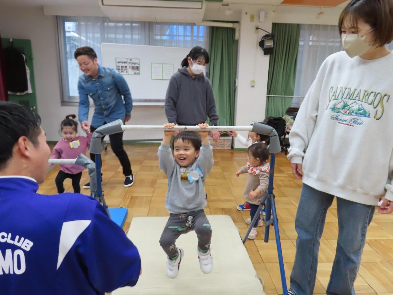 休憩の後は、幼稚園にある運動器具を使って”チャレンジタイム”