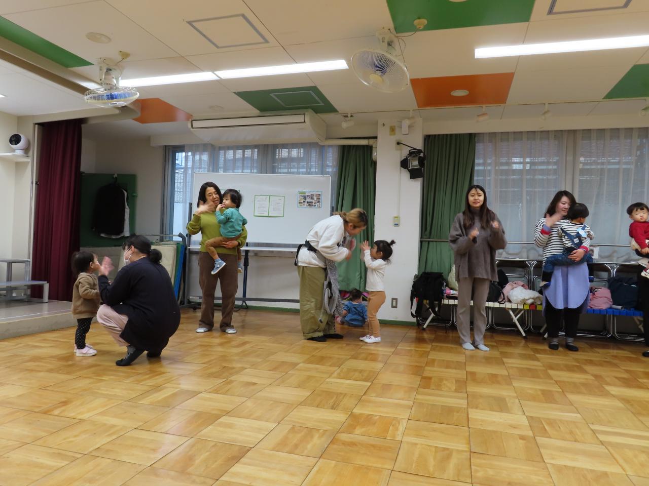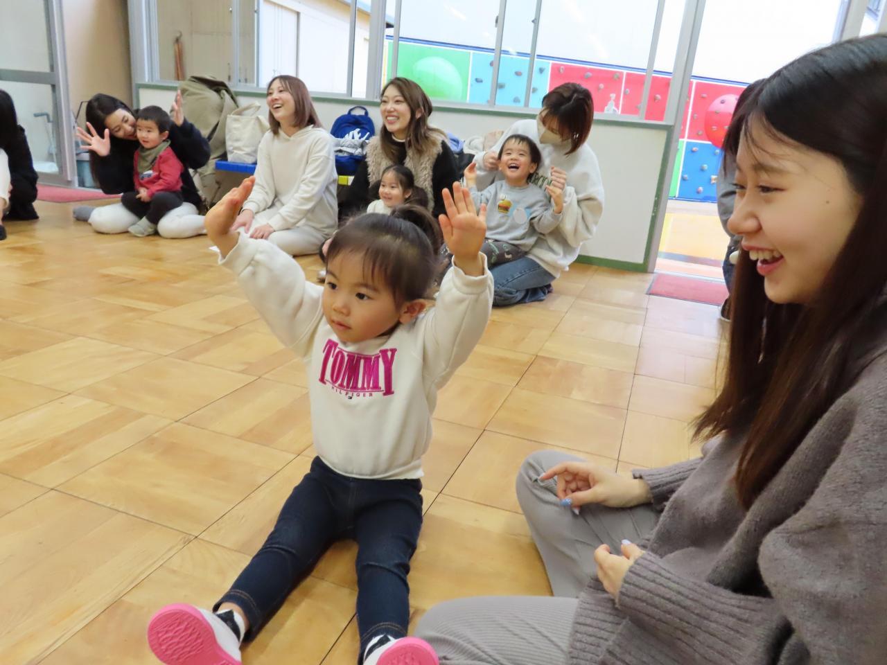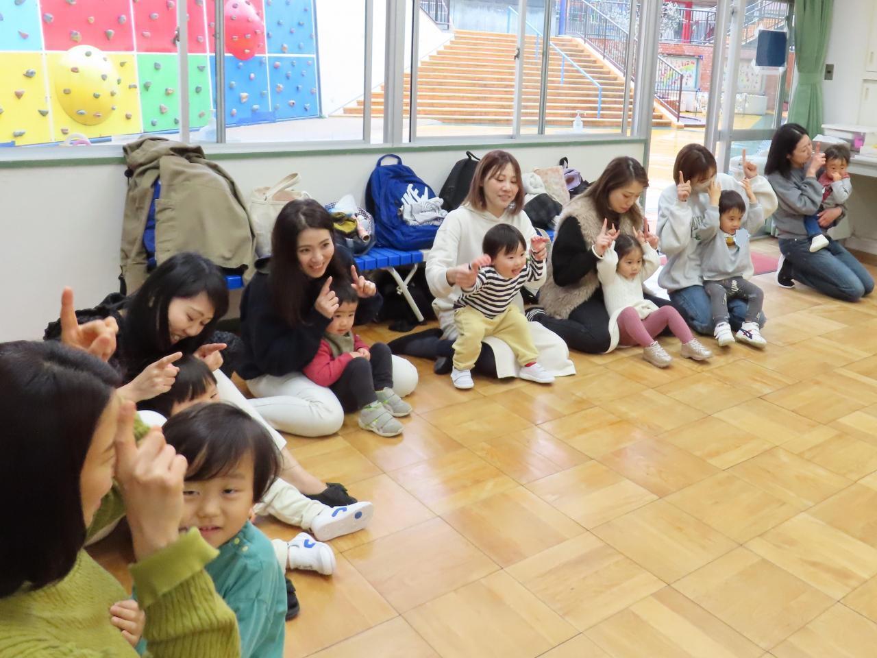 後半は、体操の先生と一緒に手遊びやふれあい遊びでスタート!