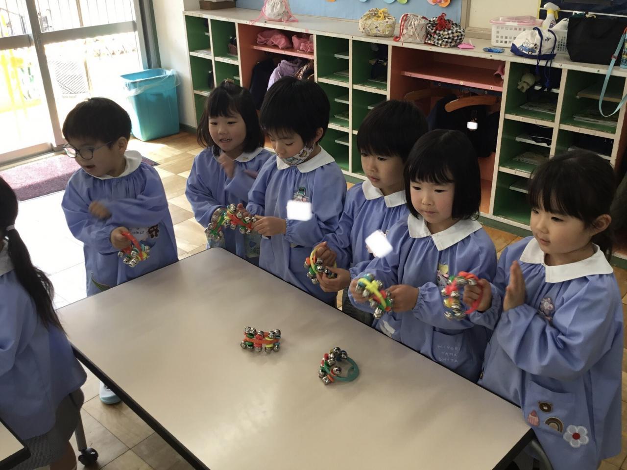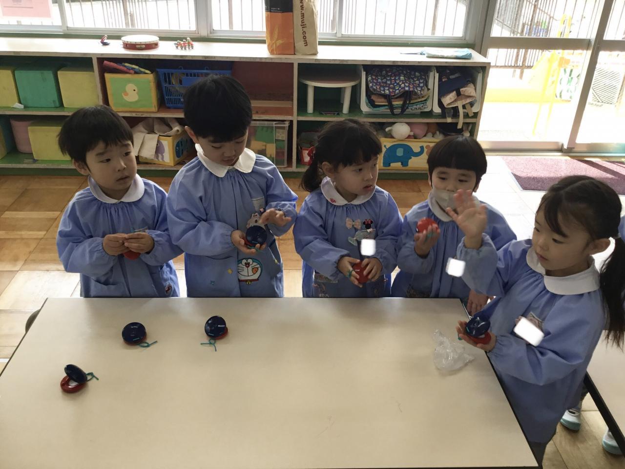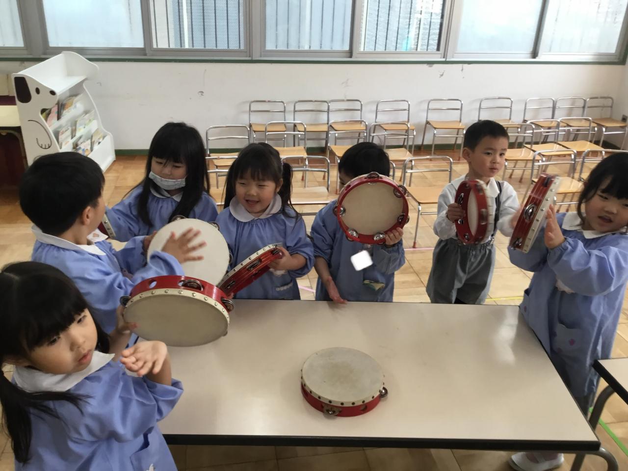 年中さん・年長さんが発表会でしていた鈴やタンバリンでも遊びました!良い音がするね☺︎