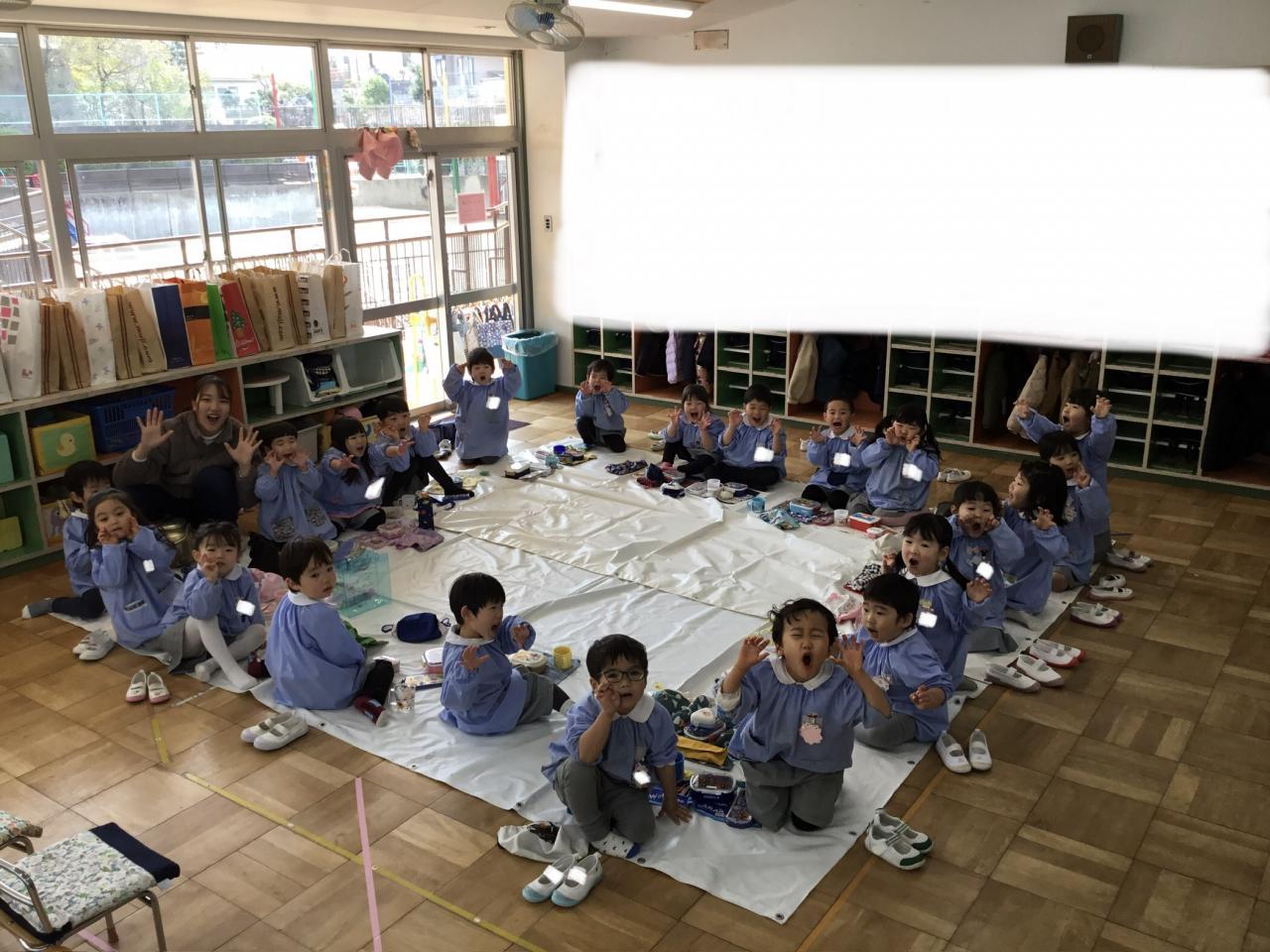 最後のお弁当の日は、お部屋の中でピクニック♪大好きな友だちと食べるお弁当はおいしいね☺︎
