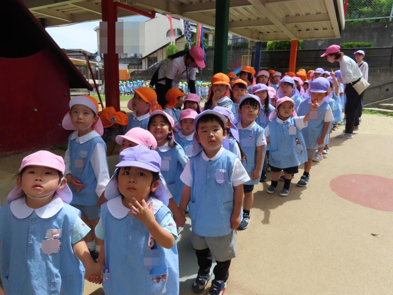 年長組の子どもたちが、年中組や年少組のお友だちをよく見て、歩くスピードを合わせたり、足元を気にかけたりと、頼もしく優しい姿が見られ、嬉しい瞬間でした。