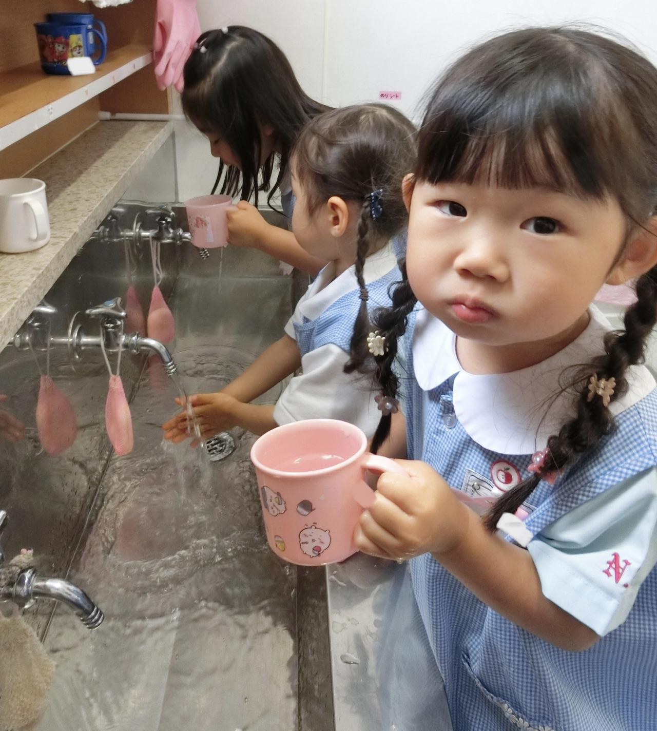 園でも食事の後にはうがいをしています。これからもうがいを習慣づけていきたいと思います。