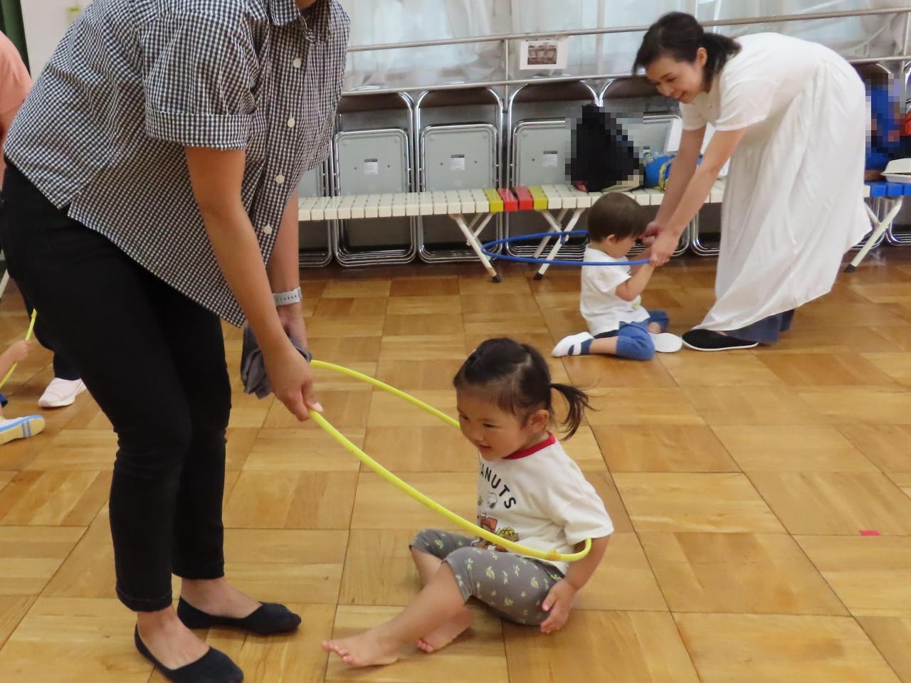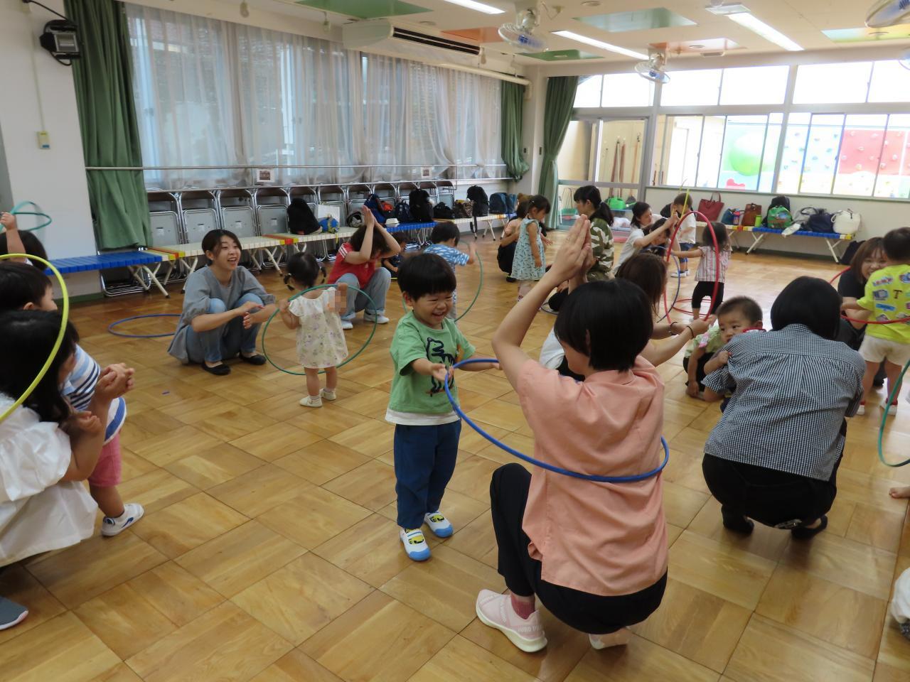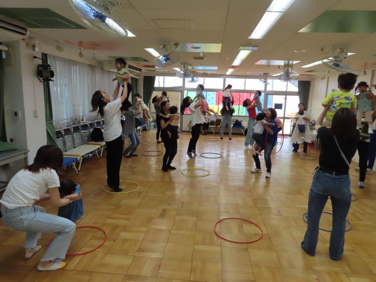 今月のキャンディクラブは大きなホールで、体操の先生と身体を動かして遊びました。