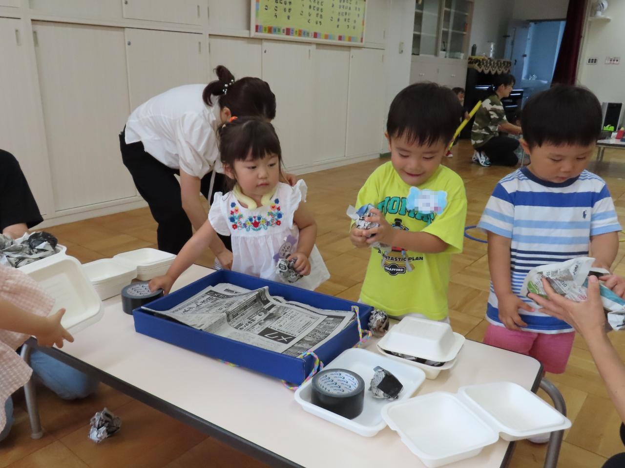 牛乳パックのぴょんぴょんカエルを、おにぎりランチBOXに忍ばせて『ビックリ箱』にしていたお友だちもいました。楽しい発想にもビックリです。