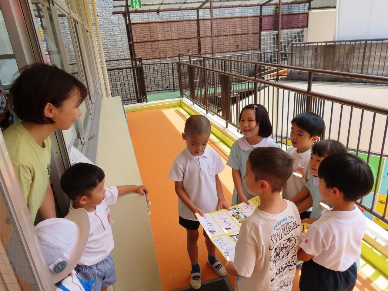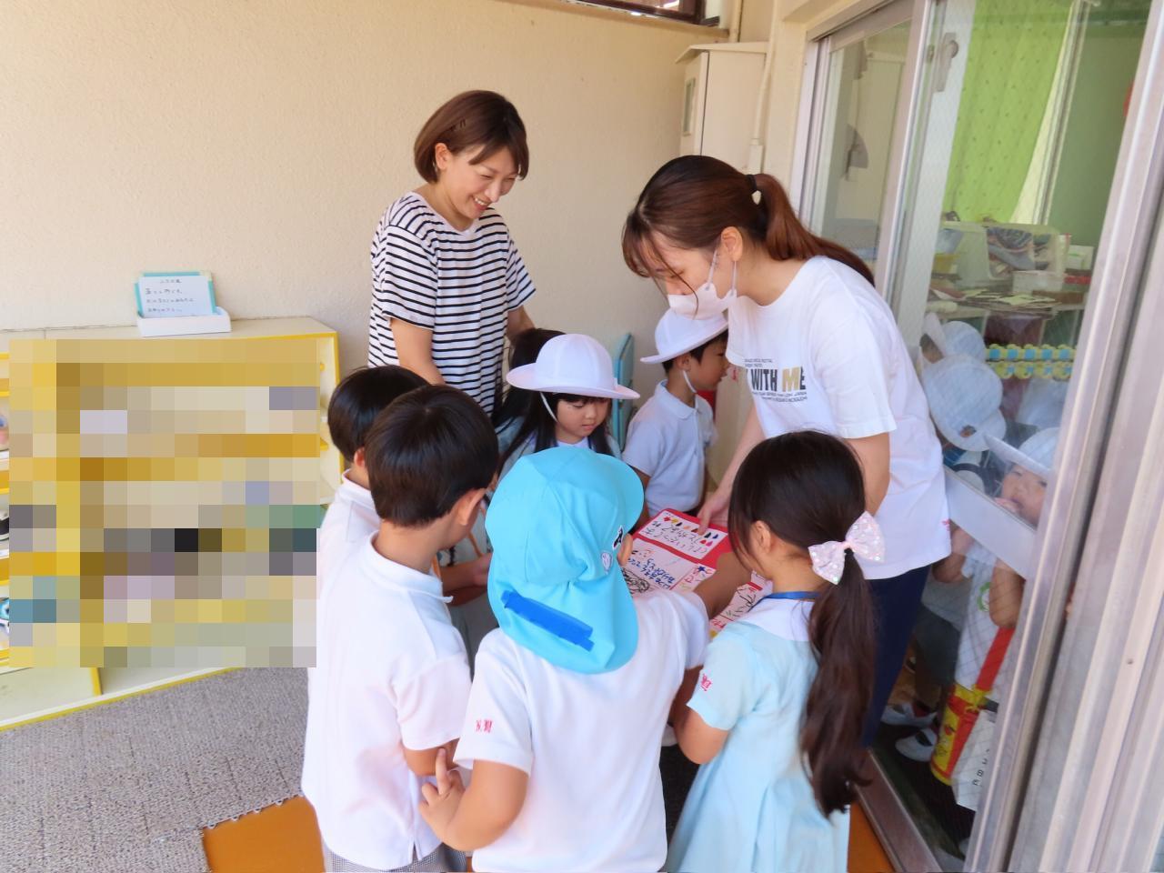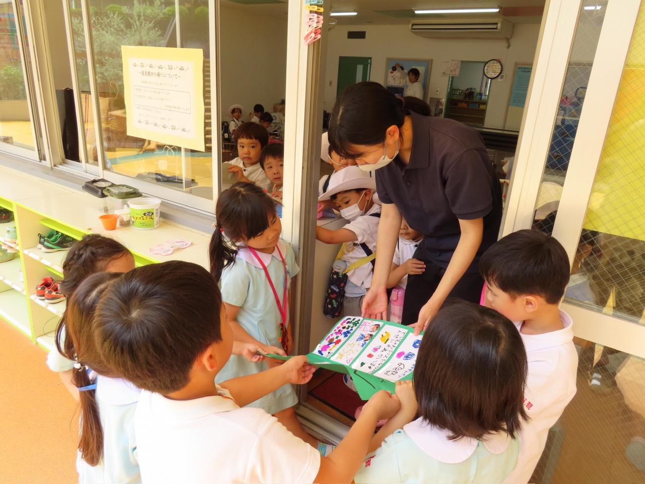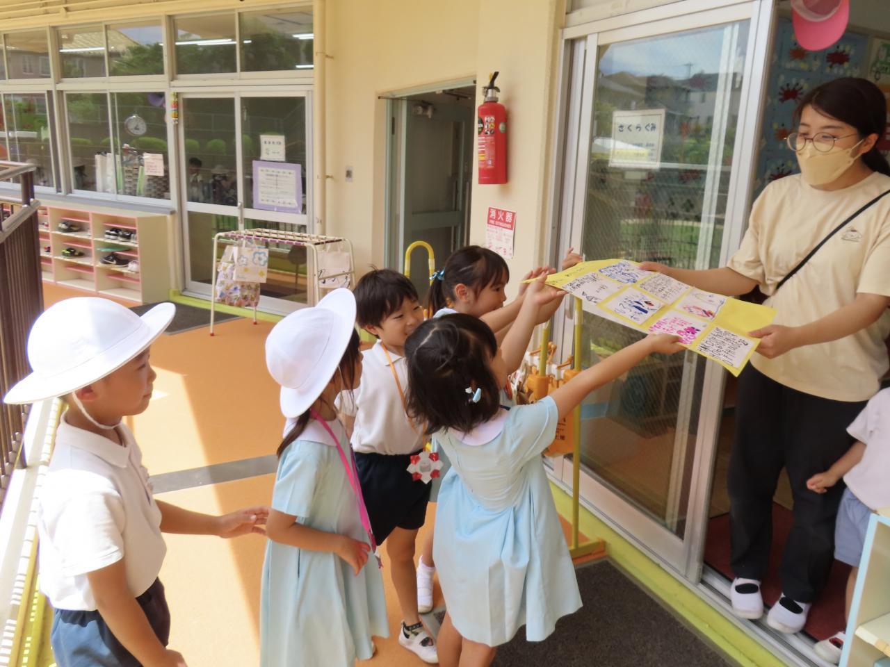 子どもたちが作った手紙をグループの担当の先生に渡しました。