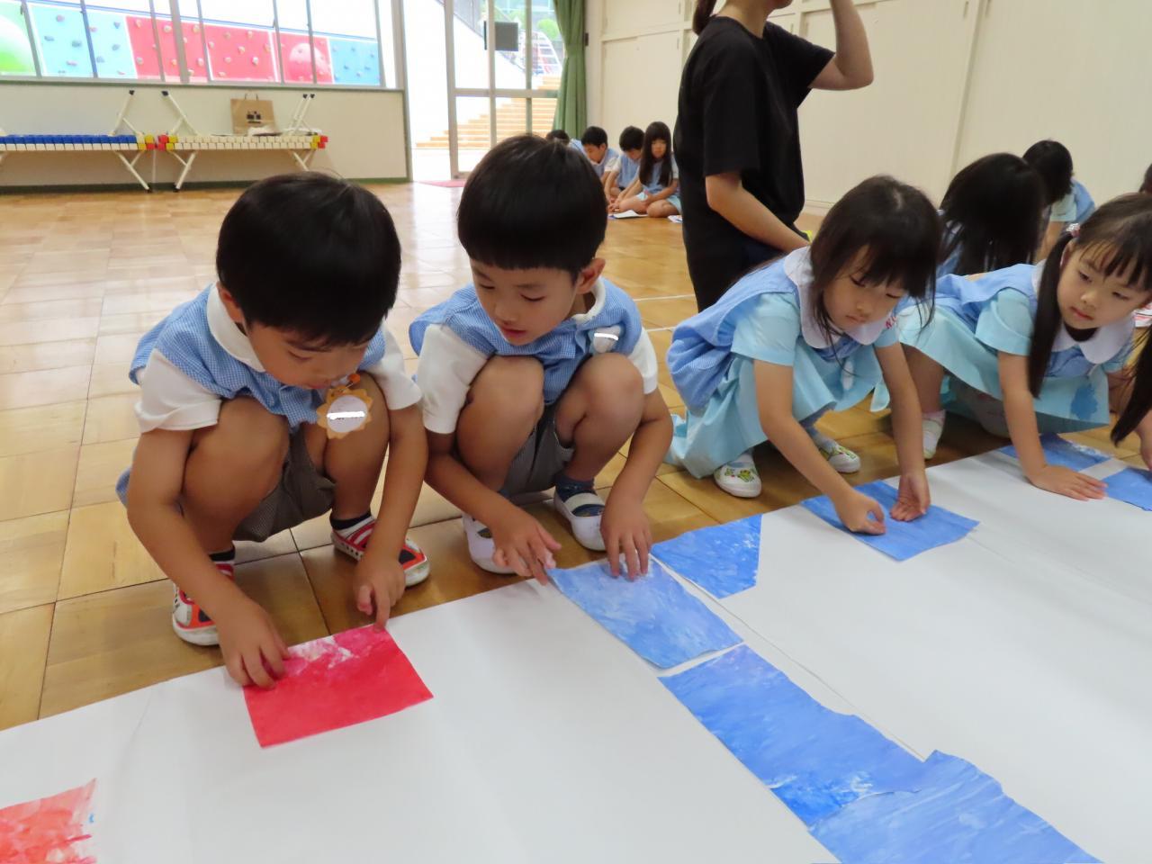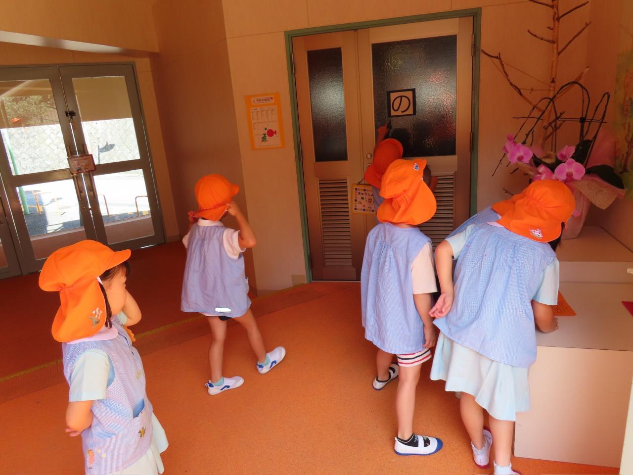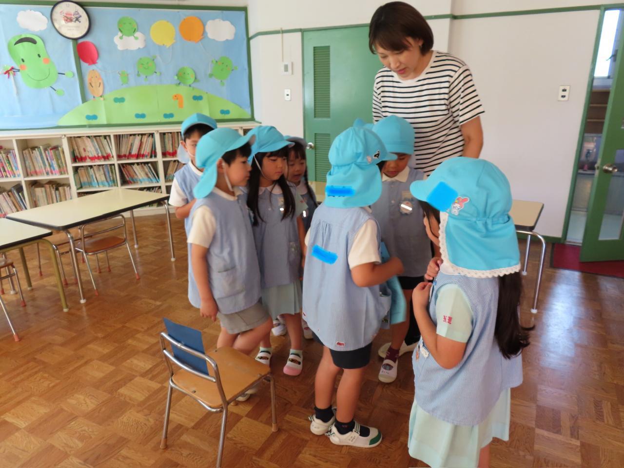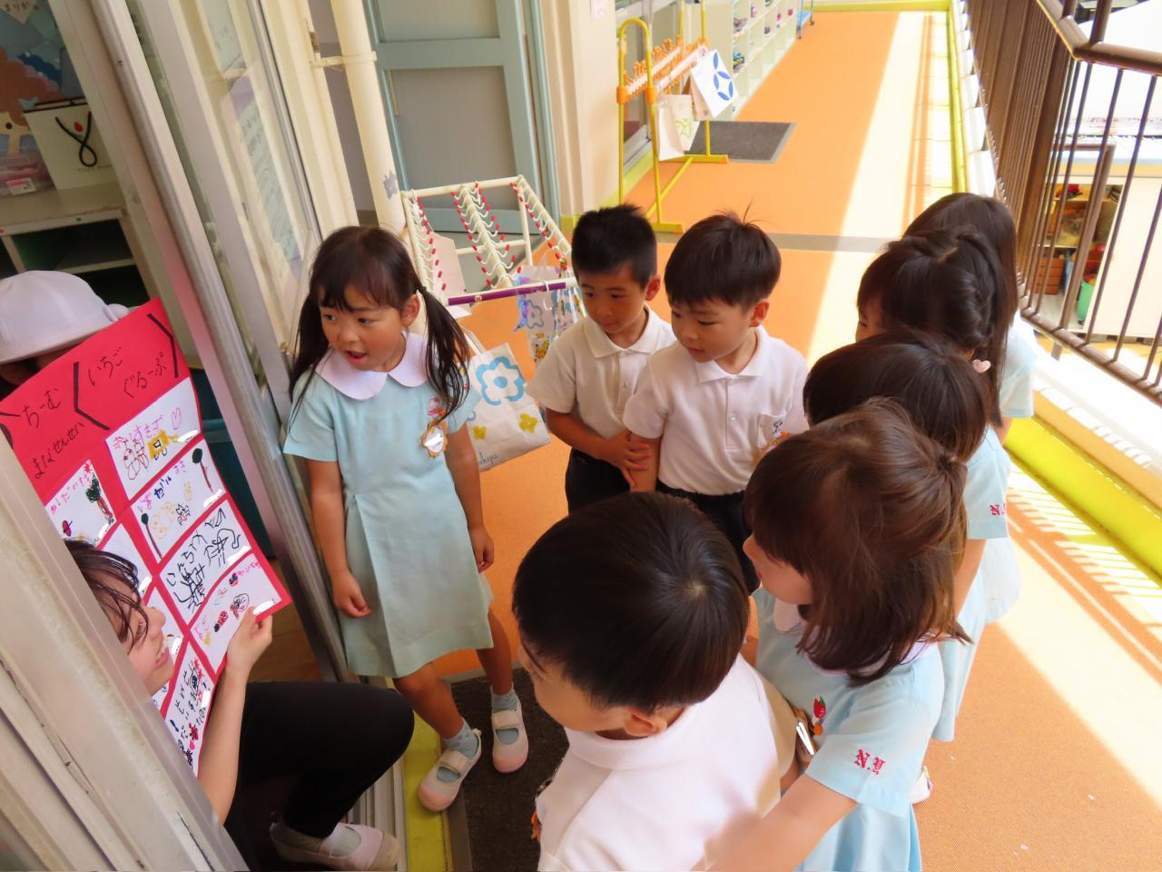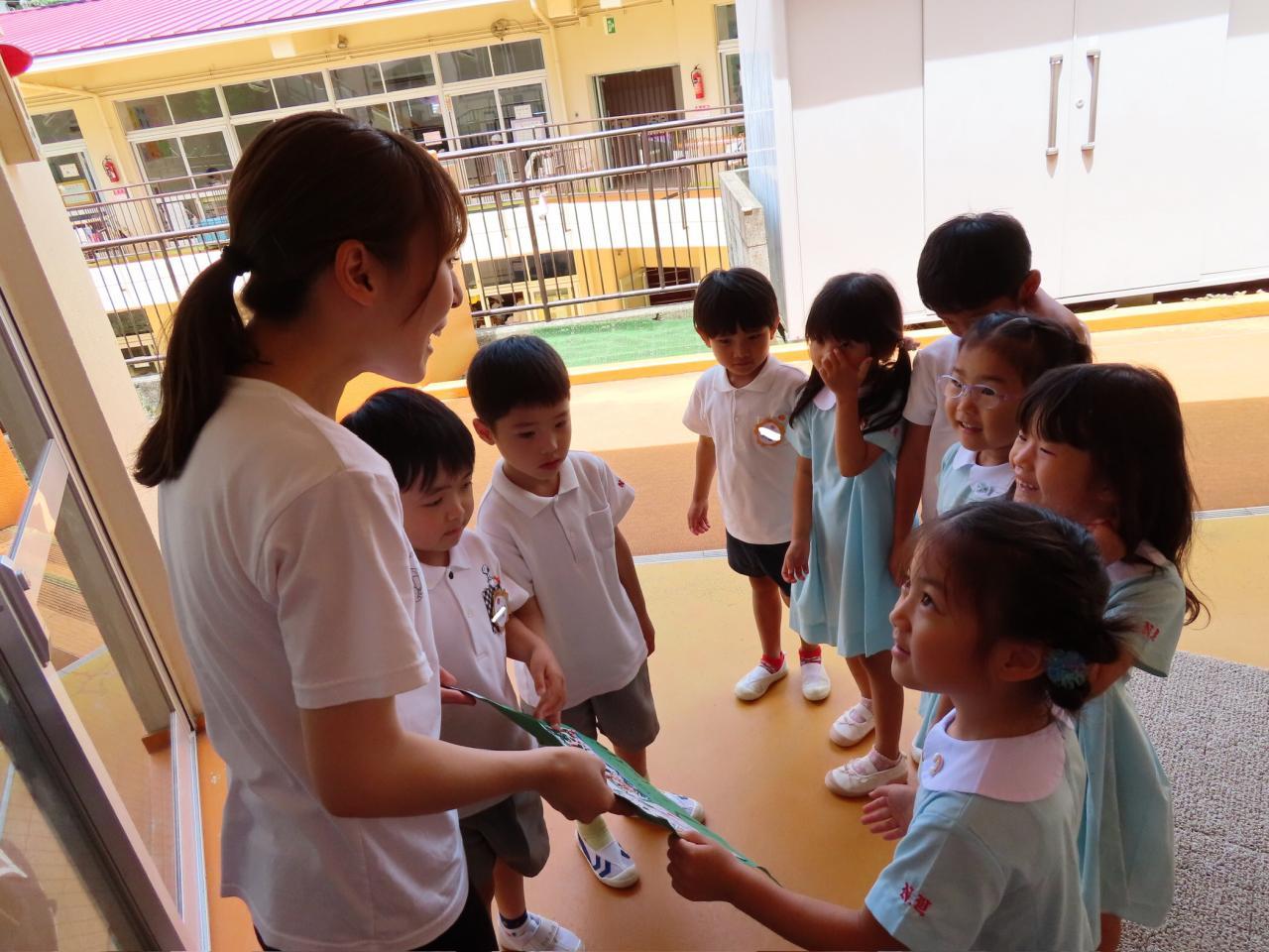 子どもたちが作った手紙をグループの担当の先生に渡しました。