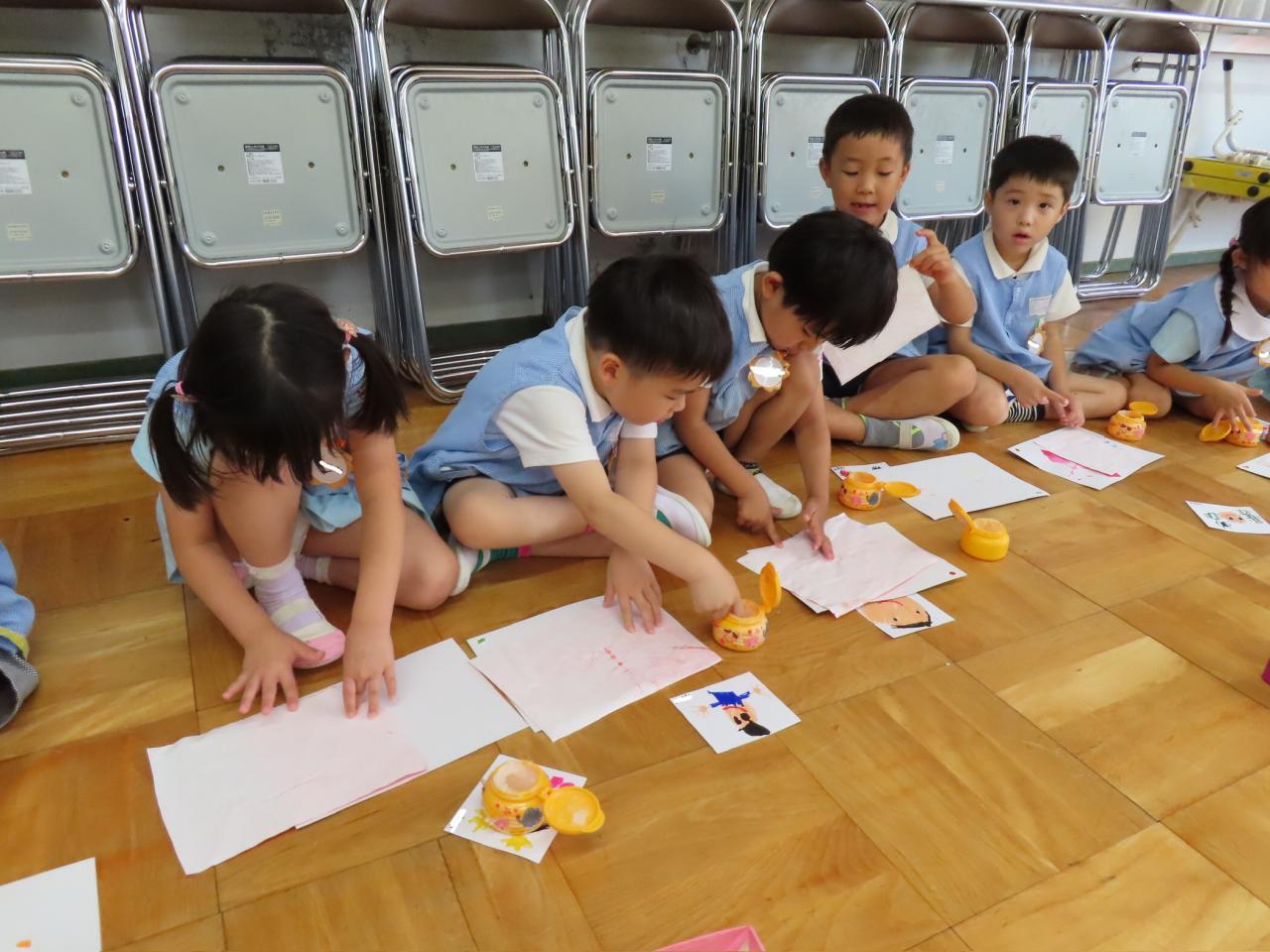 【デイキャンプチケット】が無くなるという大事件発生!!昆虫博士が隠したようです…。そこで野上幼稚園のみんなに博士からのミッション!隠してある文字を探し、チケットを見つけ出します。