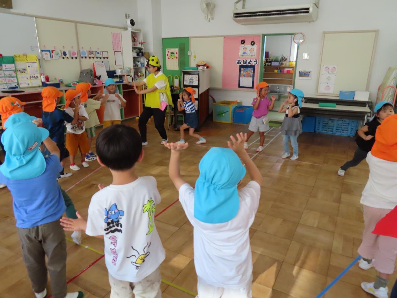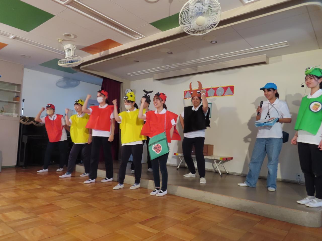 幼稚園に戻ると、なんと、テントウムシーズとクワガタマン・カブトマンがやってきて・・・いよいよミッションタイムです。【仲間と協力】が成功のポイント。