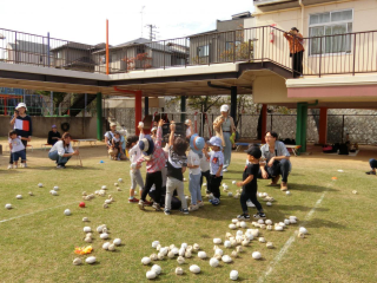 すっきりとした秋空の下、こぐまの運動会(未就園児対象)を行いました。