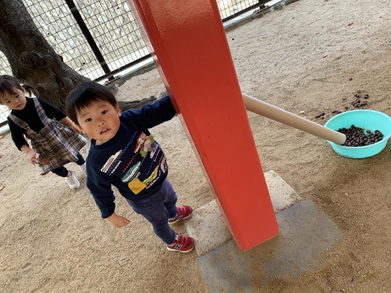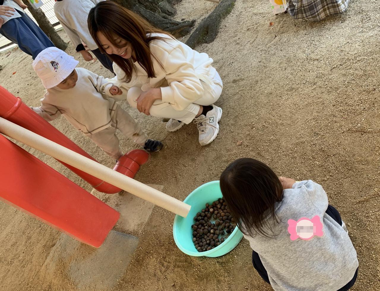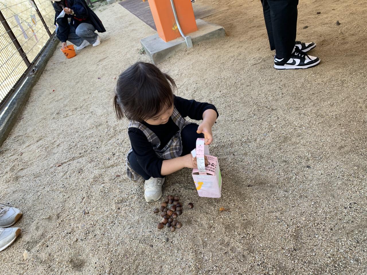 根気よくどんぐりをたくさん入れる子、少しだけ入れてあちこち散歩に出かける子、遊び方は色々です。