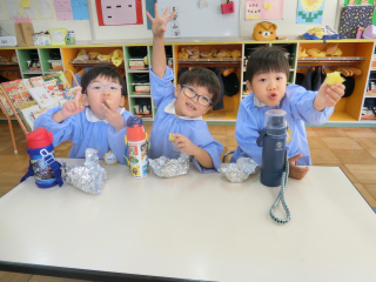 焼き芋ができあがるまで、先生の劇やお芋クイズを楽しみました。