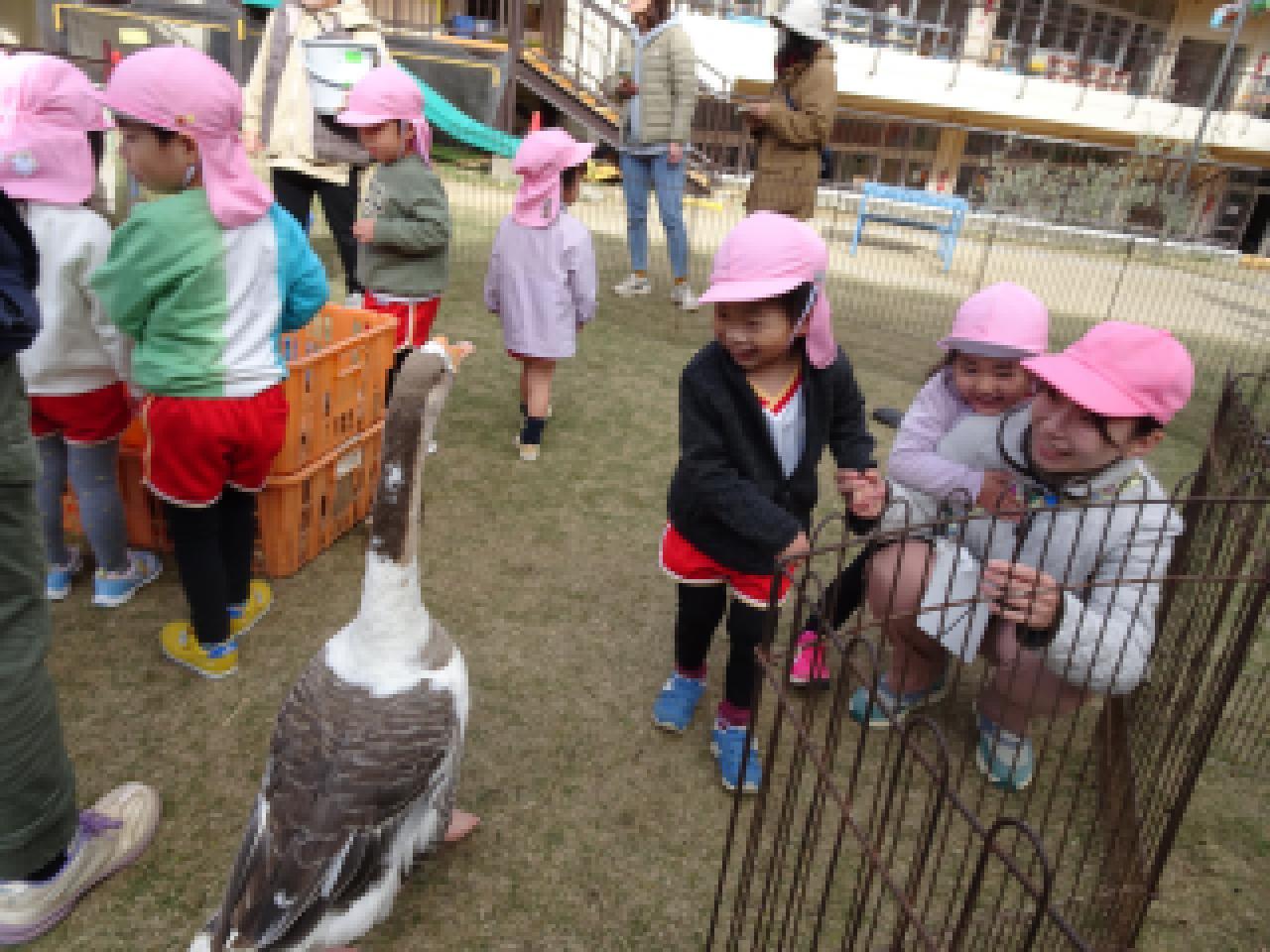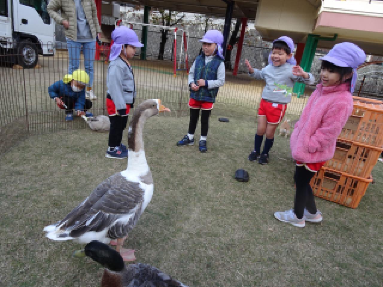 ガチョウさんの鳴き声にびっくり!することも。