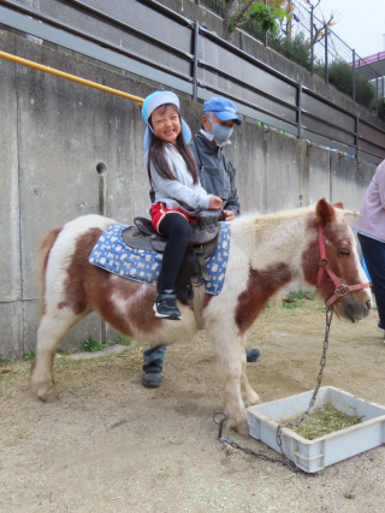 希望者はポニーにも乗せていただきます。体重30㎏ぐらいまでの人ならOKだそう。