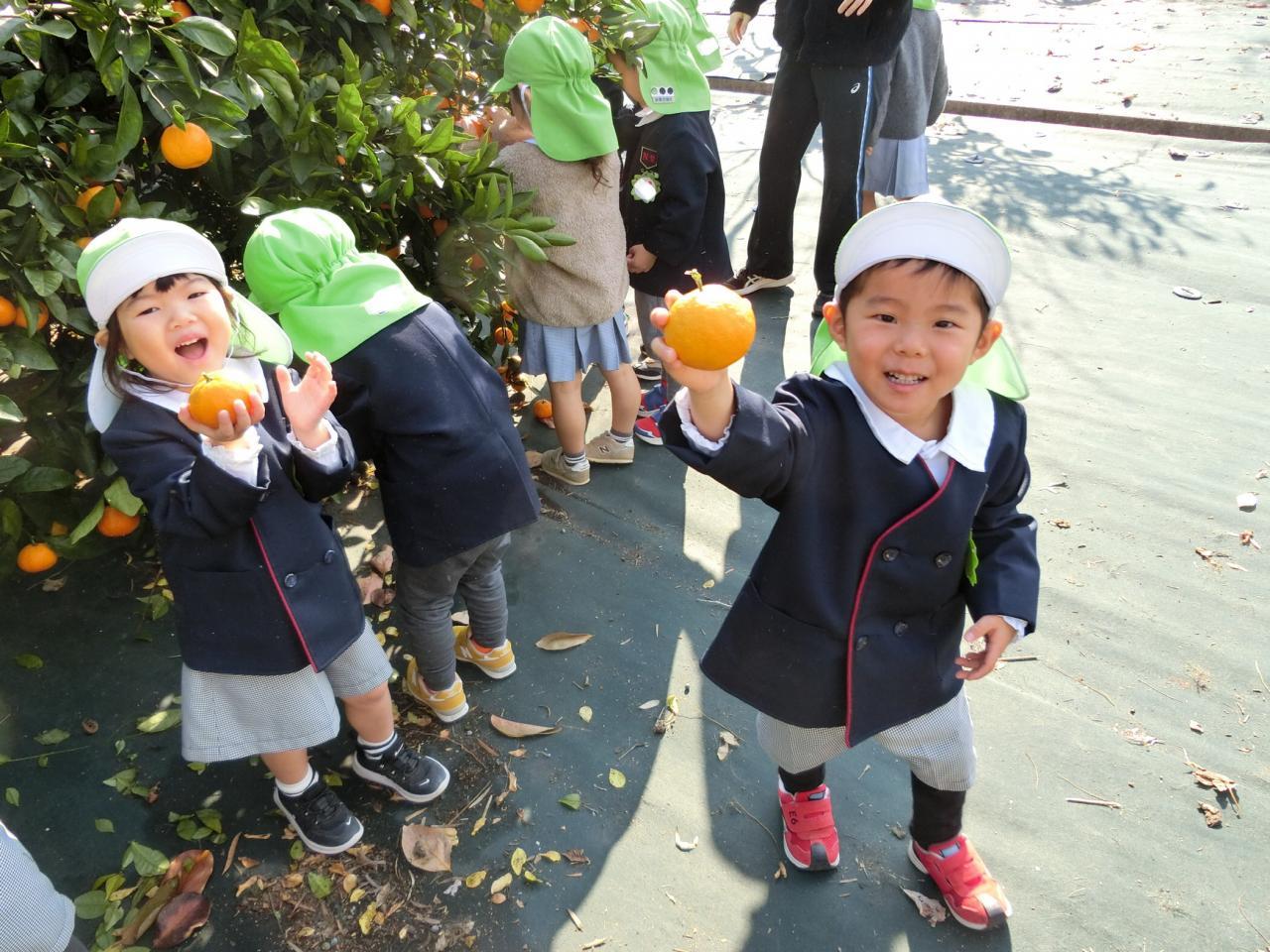 「みかん狩り、行って良かったね♡」「はやくお家でみかん食べたいね!」「今日の夜ご飯のデザートはみかんだね♪」と、楽しいお話が止まらない子どもたちでした。