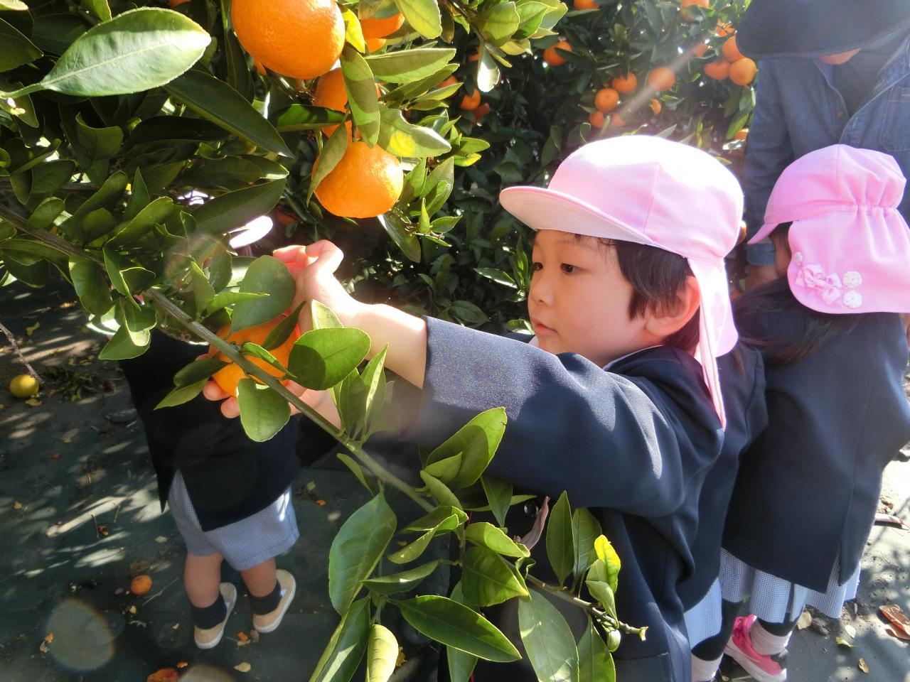 みかん狩りがあることを伝えた日から「みかんがりはまだ?」「10個よりもいっぱいとるんだ!」とこの日を心待ちにしていた子どもたち。