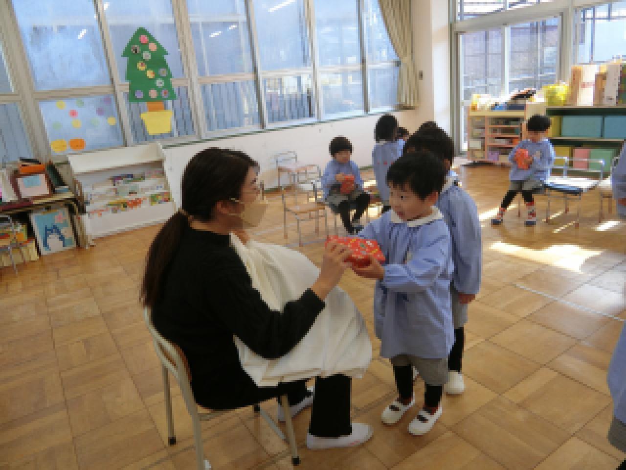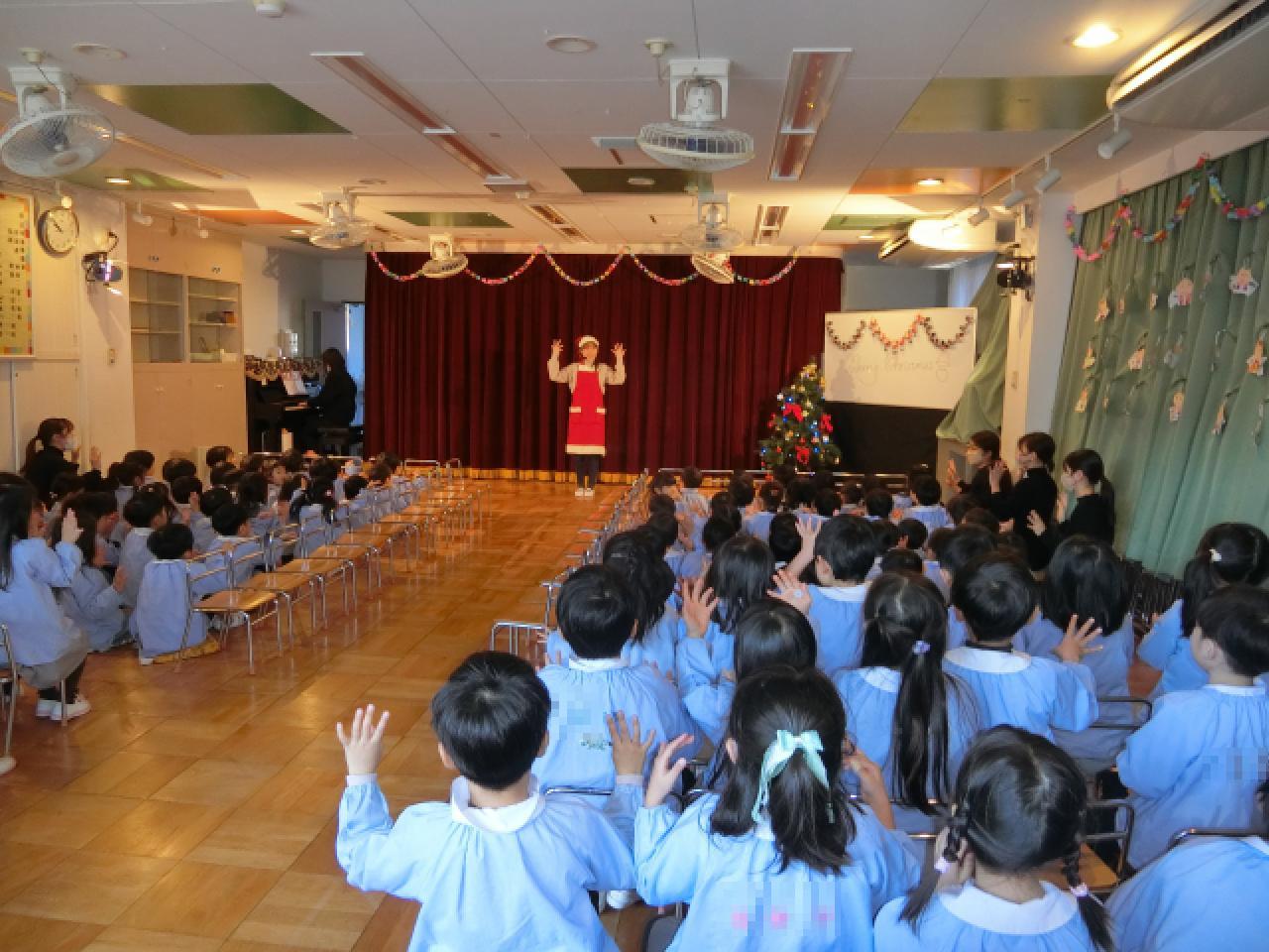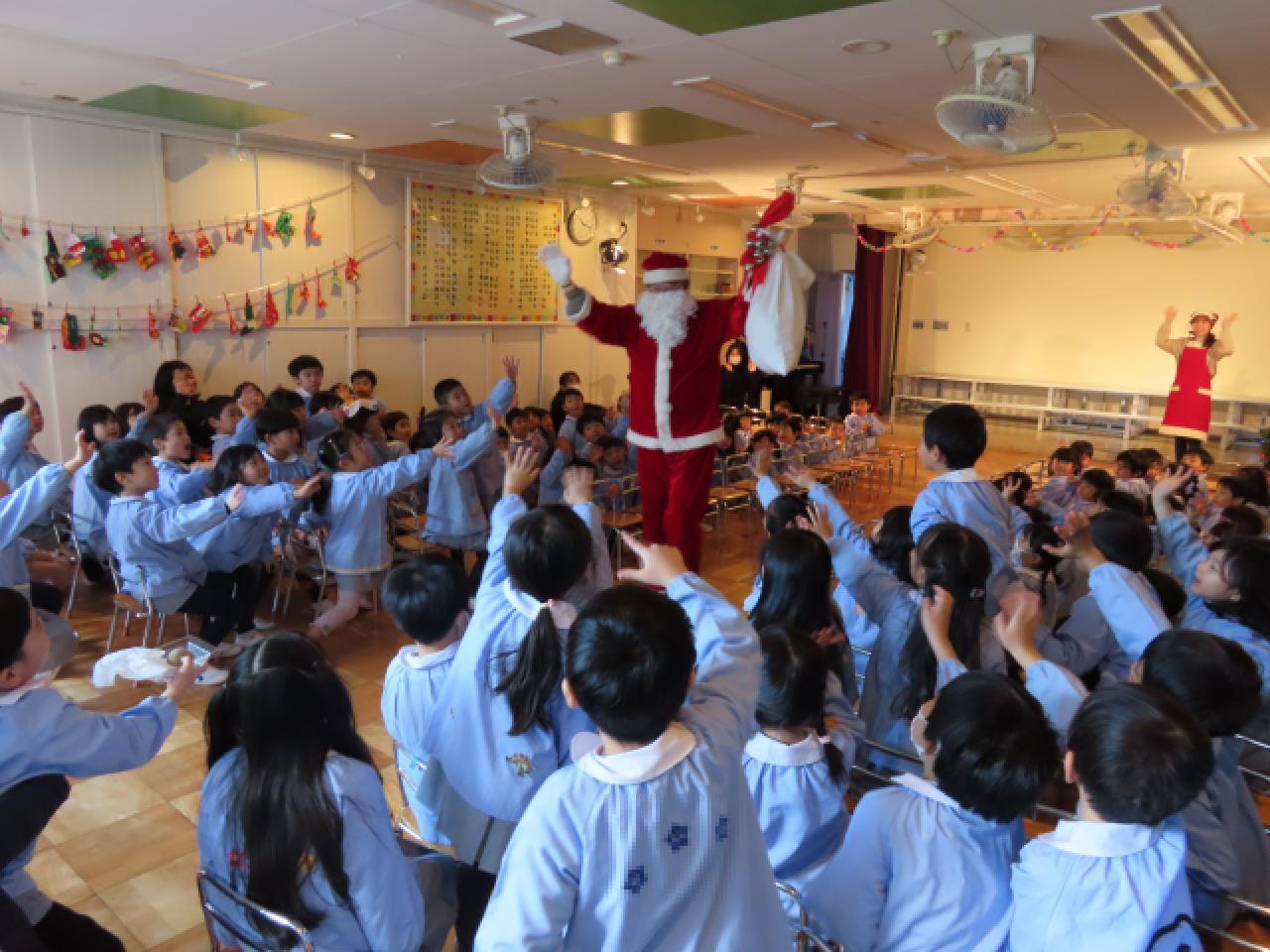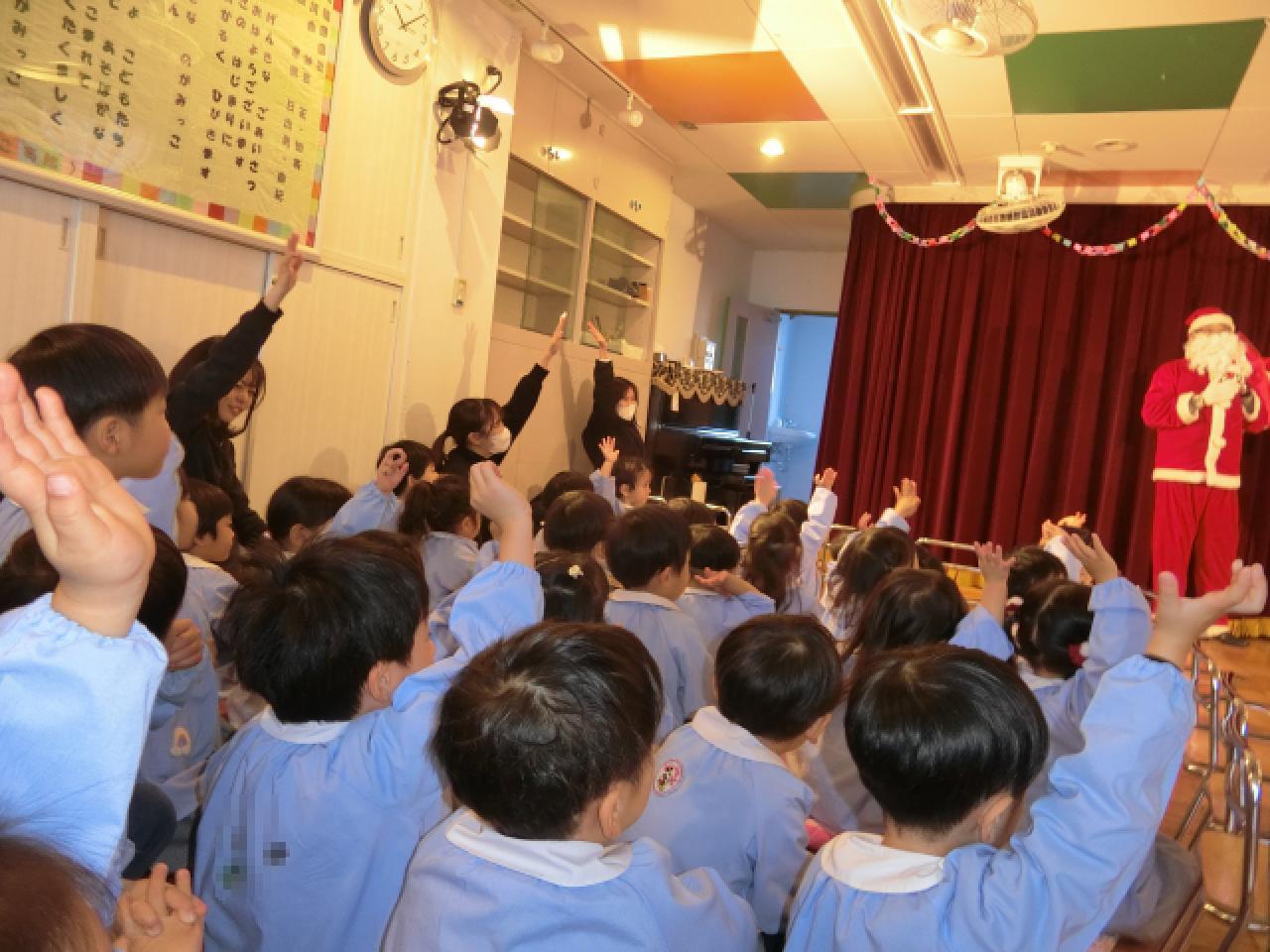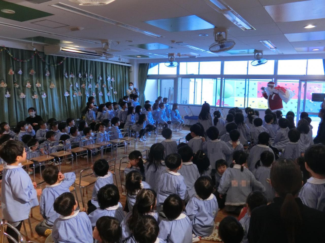 サンタさんは恥ずかしがり屋⁈ 司会の先生にそっと教えてくれました。