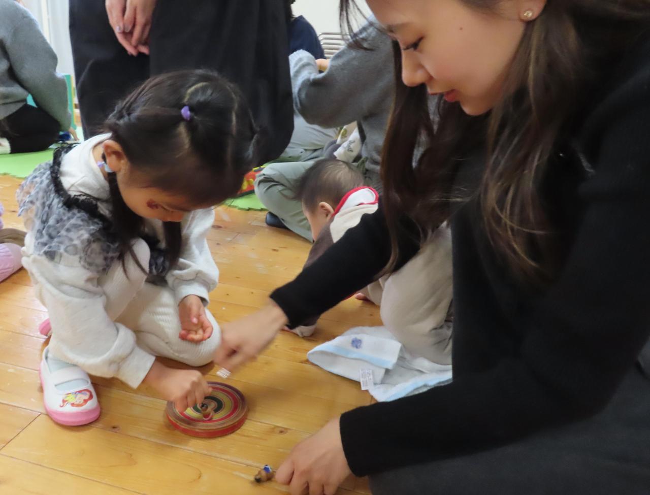 お手玉やコマなど、昔から親しまれている遊びを楽しんだ1月のキャンディクラブ。