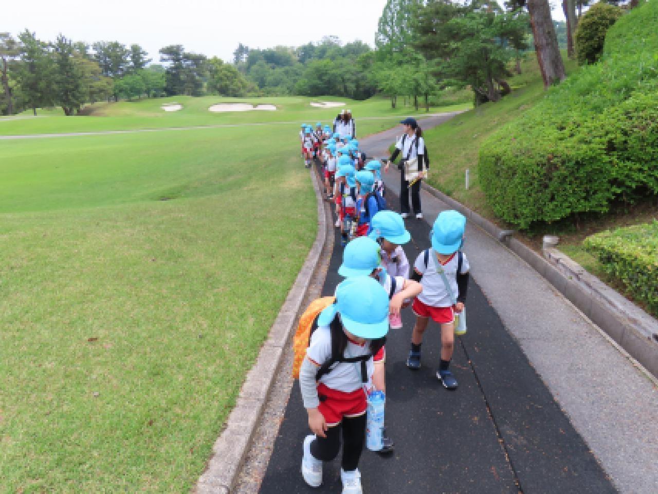 年長さんは、幼稚園からゴルフ場まで徒歩で🚶