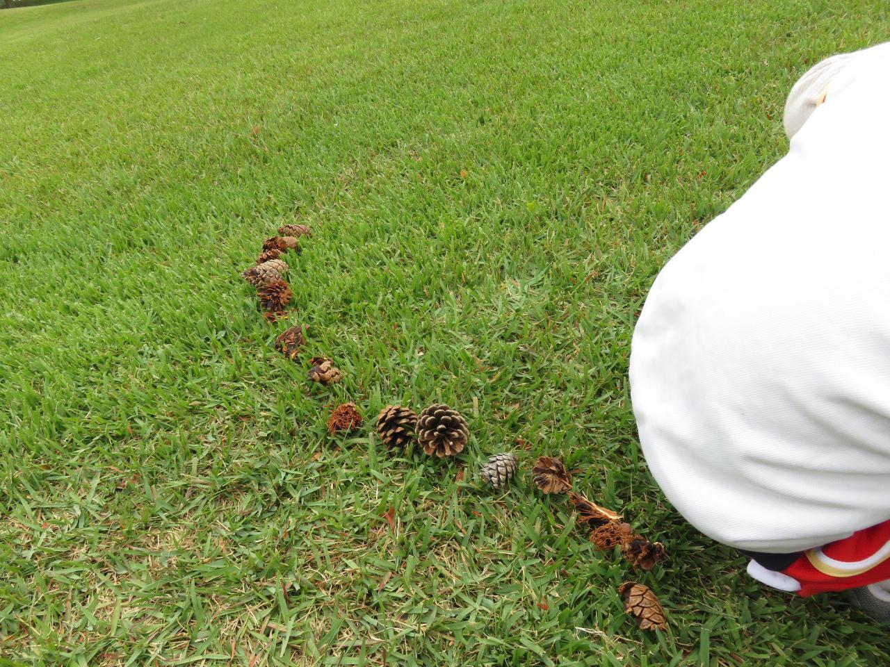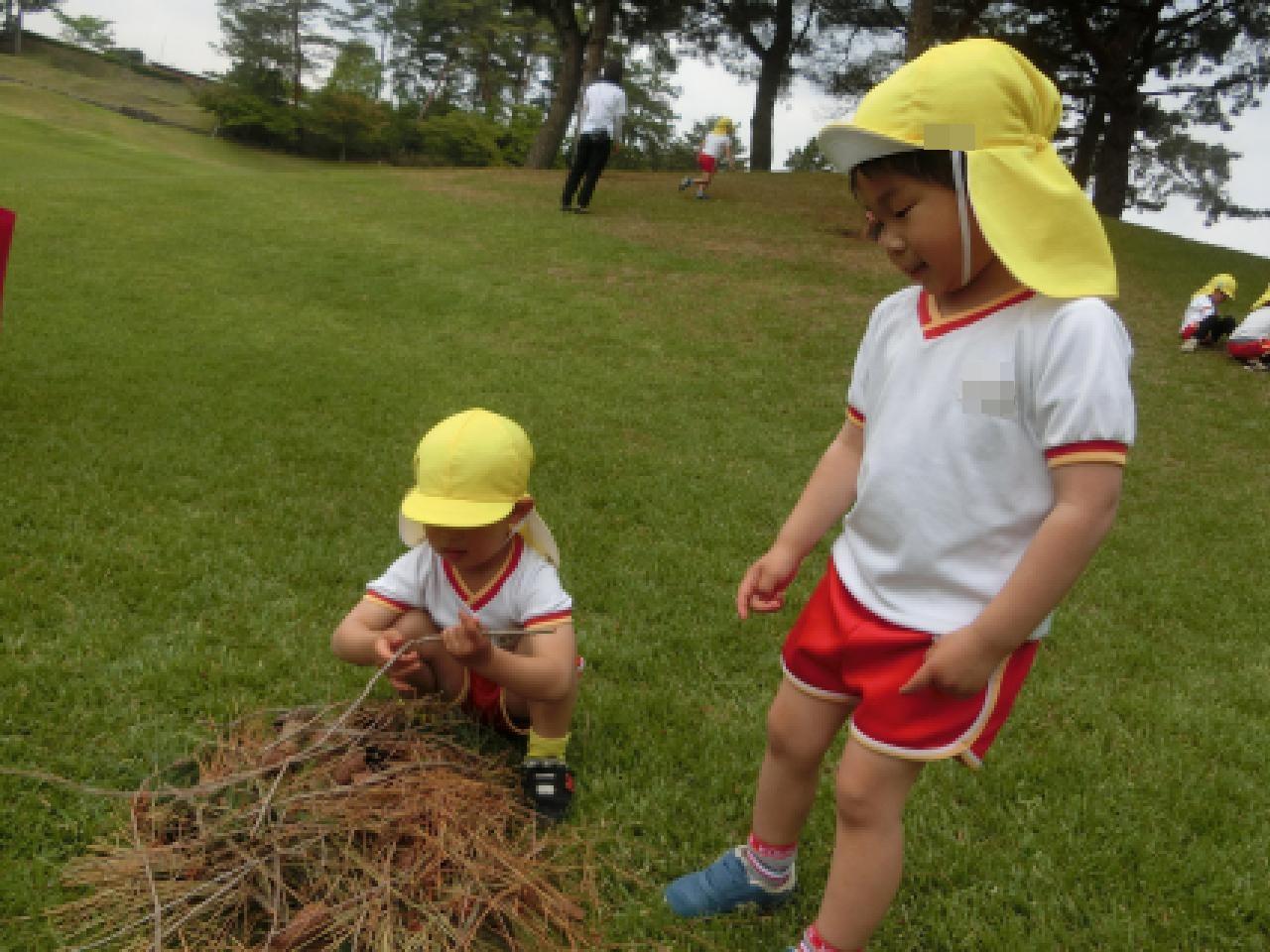 芝生の丘を転がったり、滑ったり、鬼ごっこや松ぼっくり探しなどお気に入りの遊びを見つけて 子どもたちは夢中な様子。