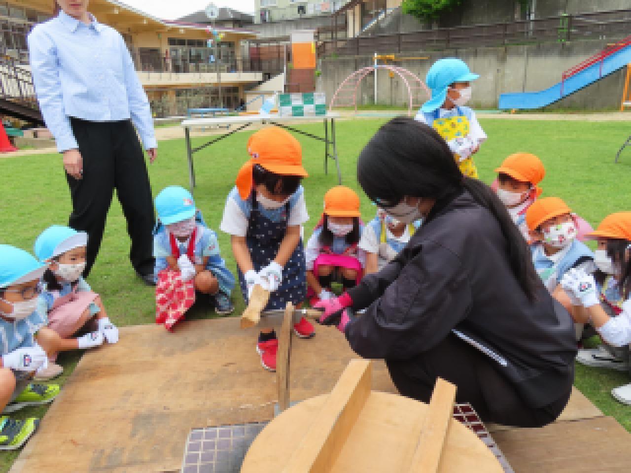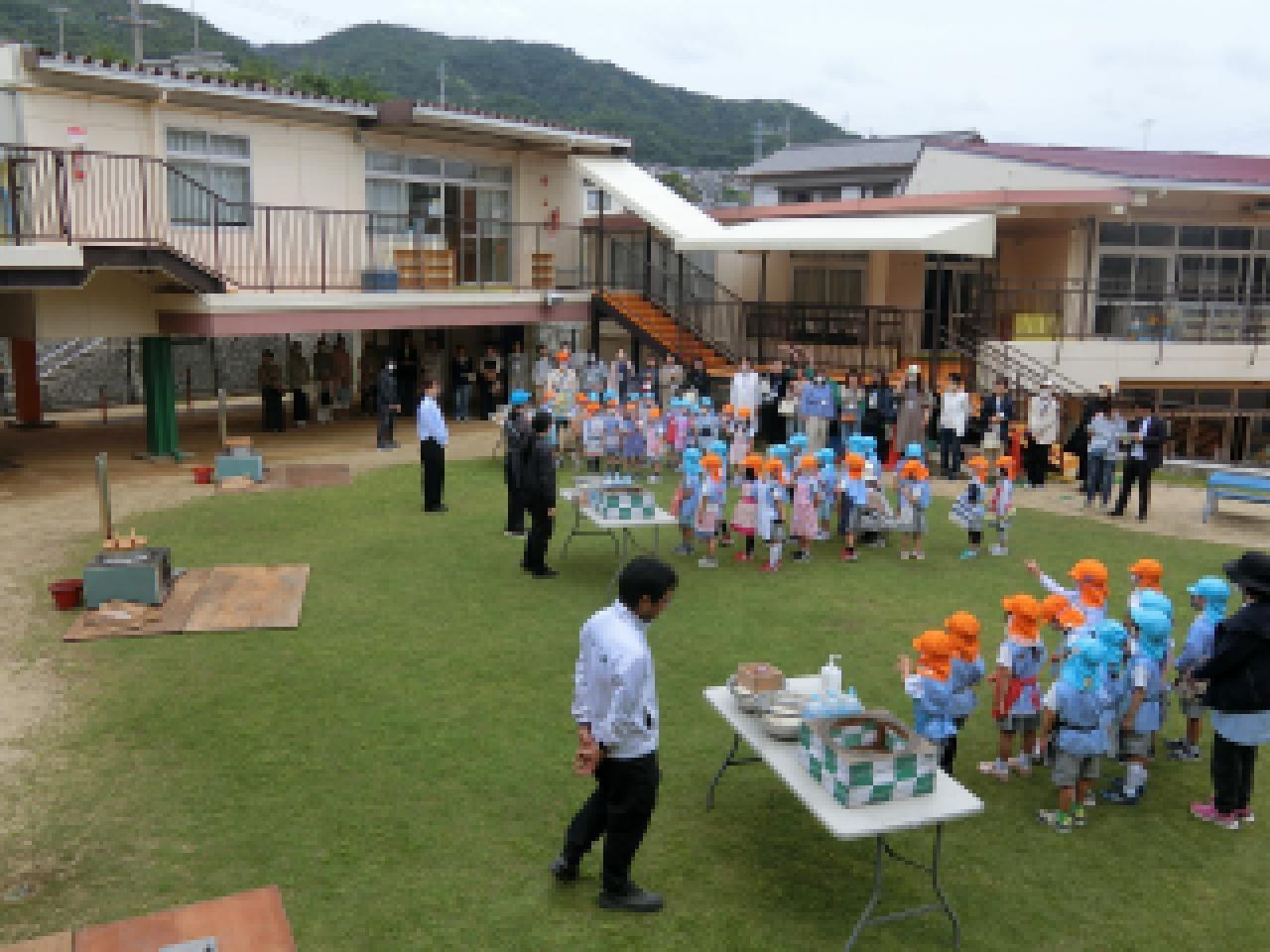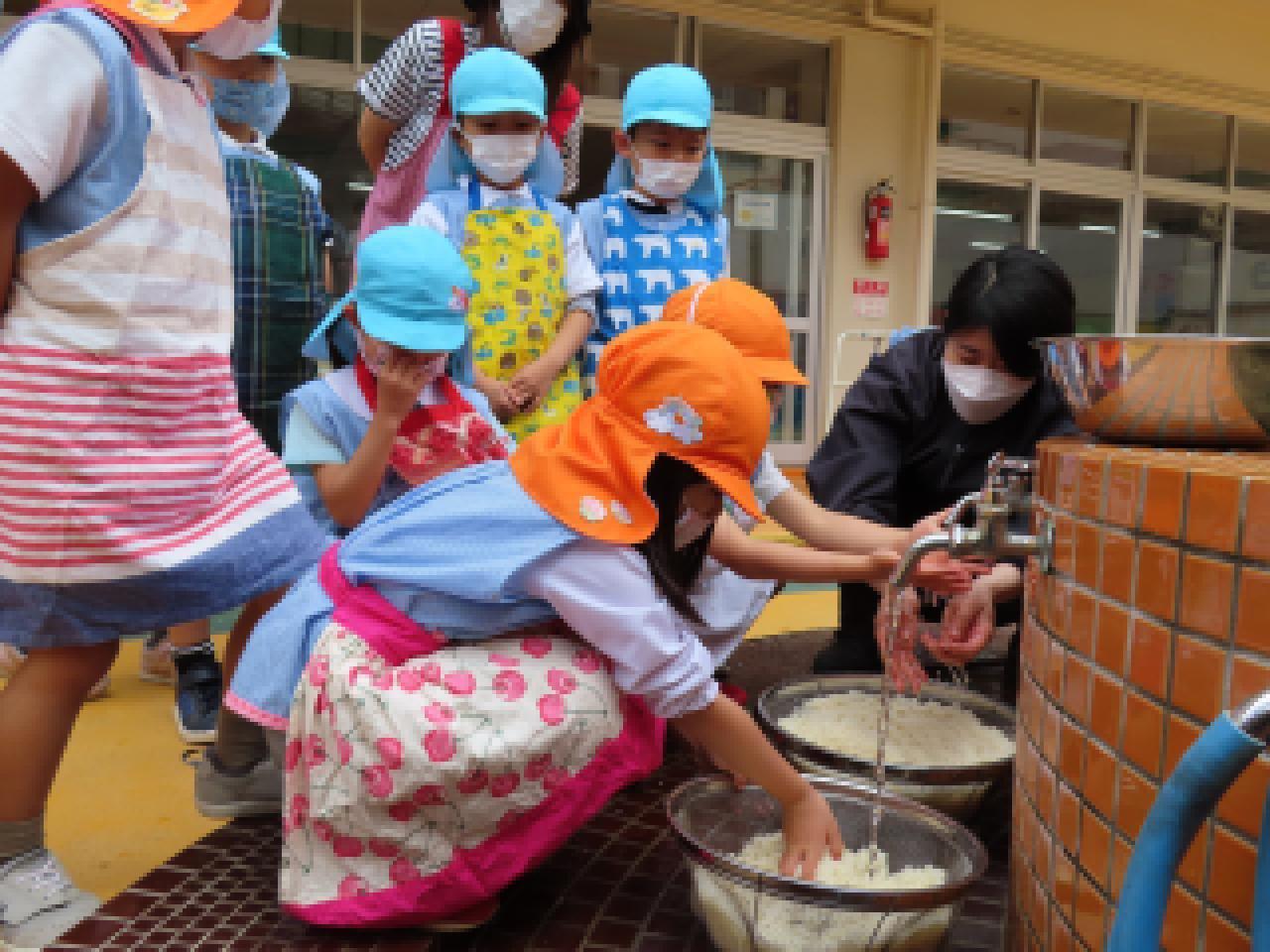 年長組の子どもたちのかまど炊飯体験・希望保護者の方の食育講義を組み合わせたおいしいごはんを食べよう県民運動『かまどごはん塾』を実施していただきました。