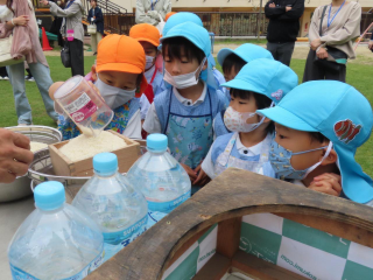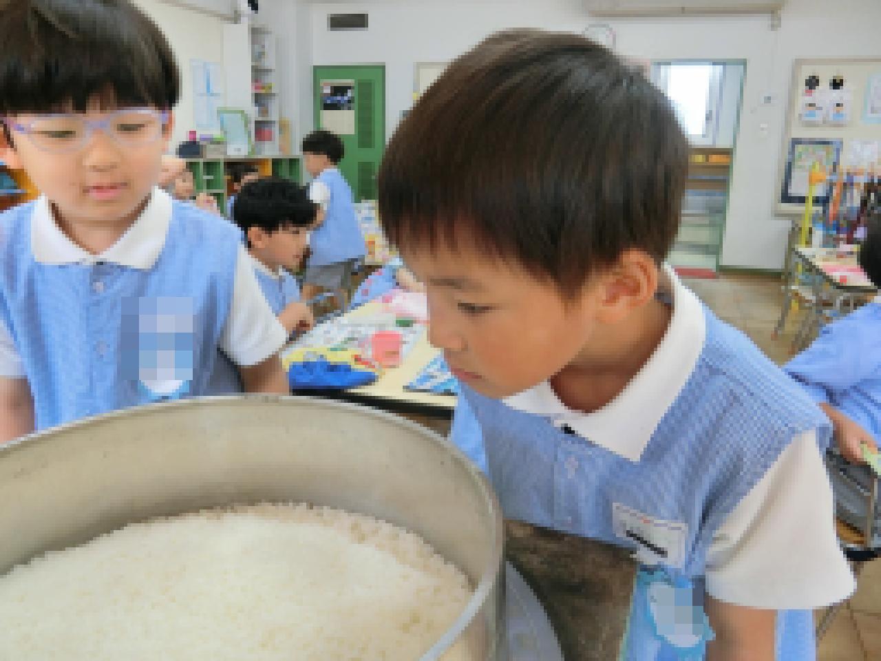 見学していた年少さんと年中さんが、「がんばれ~」「おいしくな~れ」と応援してくれ、ますます年長さんのパワーがアップ!