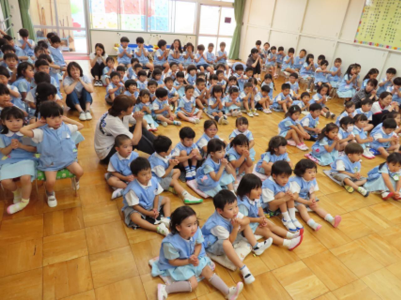 七夕まつりの当日、前半はホールで全クラスでの集い。