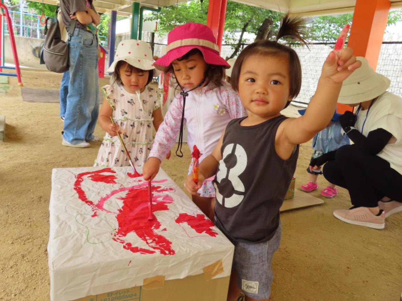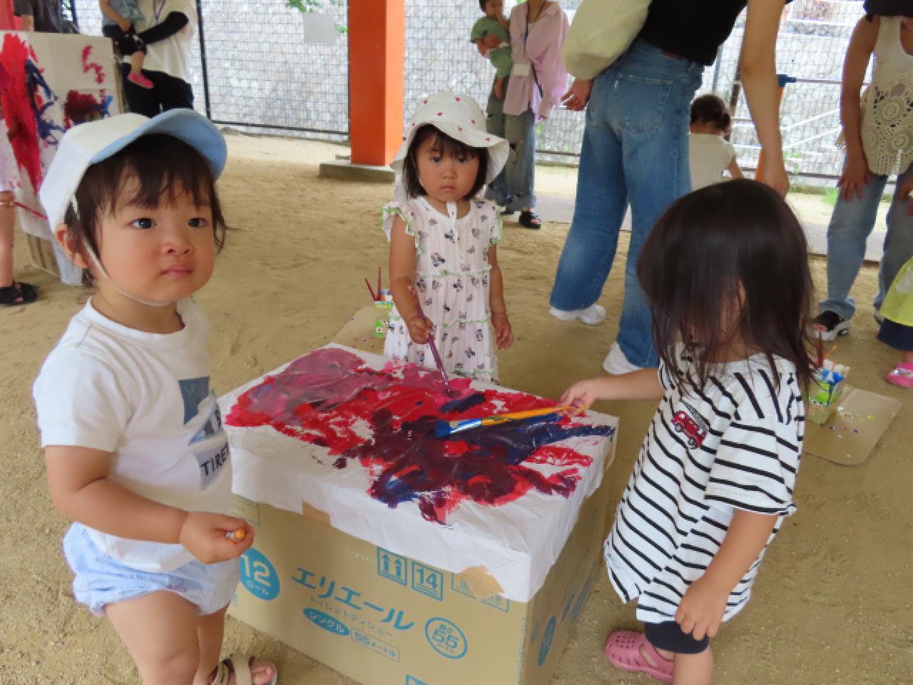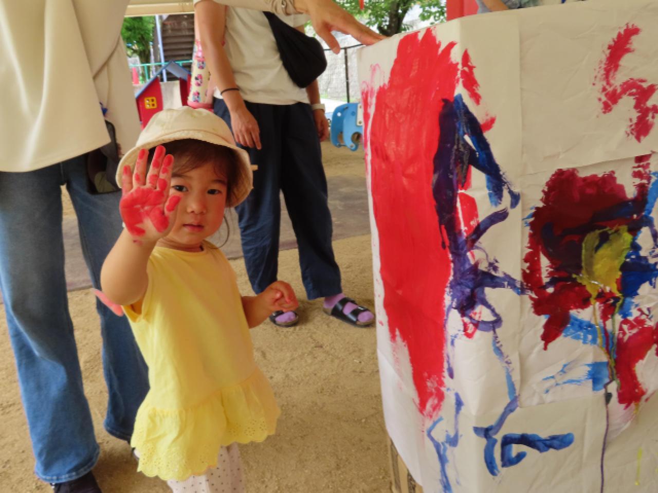 気が付くと、自分の手にも”ぬりぬり”。絵の具の感触も感じながらアートを楽しみました。