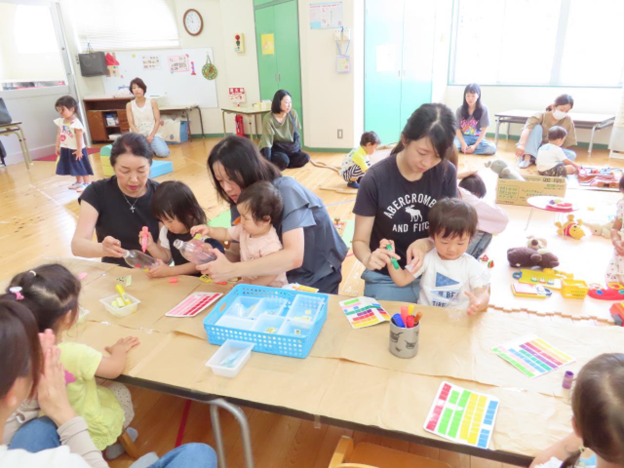 遊んでいるうちに、水の出方の違いに気づいたお子さんや、自然と道具の貸し借りをして 交流していた子どもたちもいました。