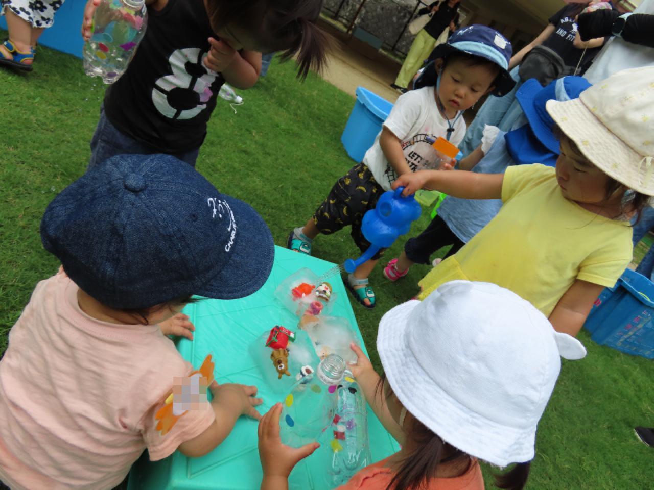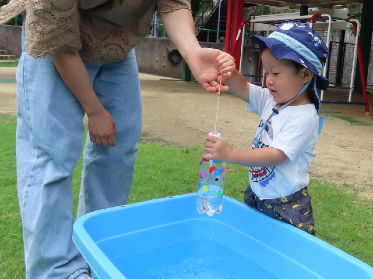 ペットボトルのクルクルシャワーで水と仲良しになってね。
