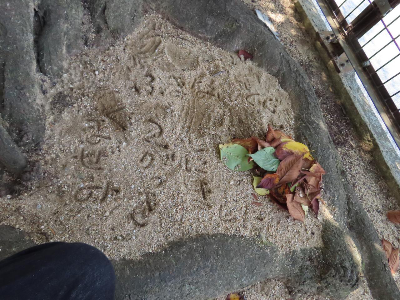 「先生、これ(小枝)でここ(地面)に字を書いて。」