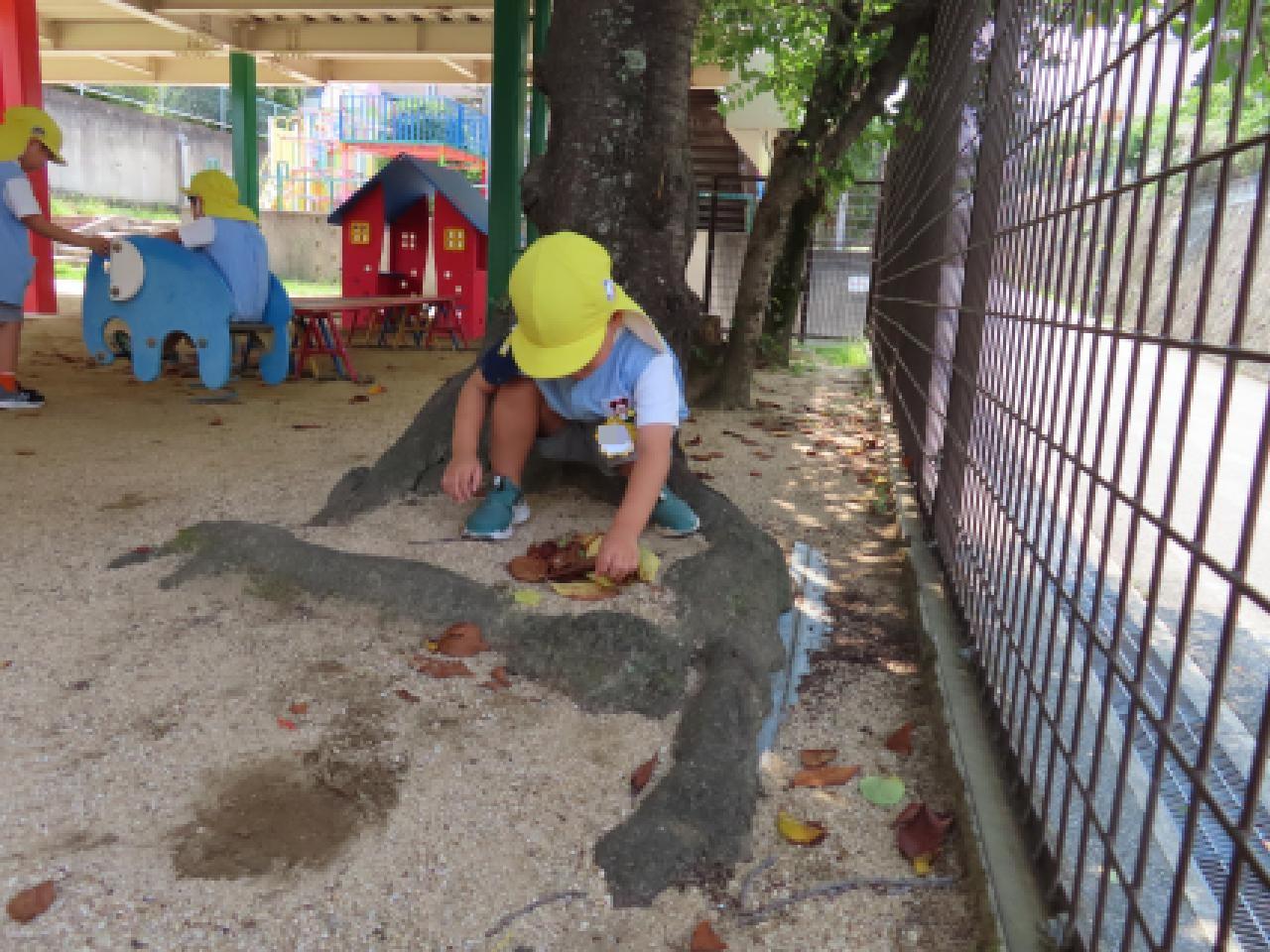 落ち葉を選んで、集めて、そっと重ねて、セミさんとお別れをしました。
