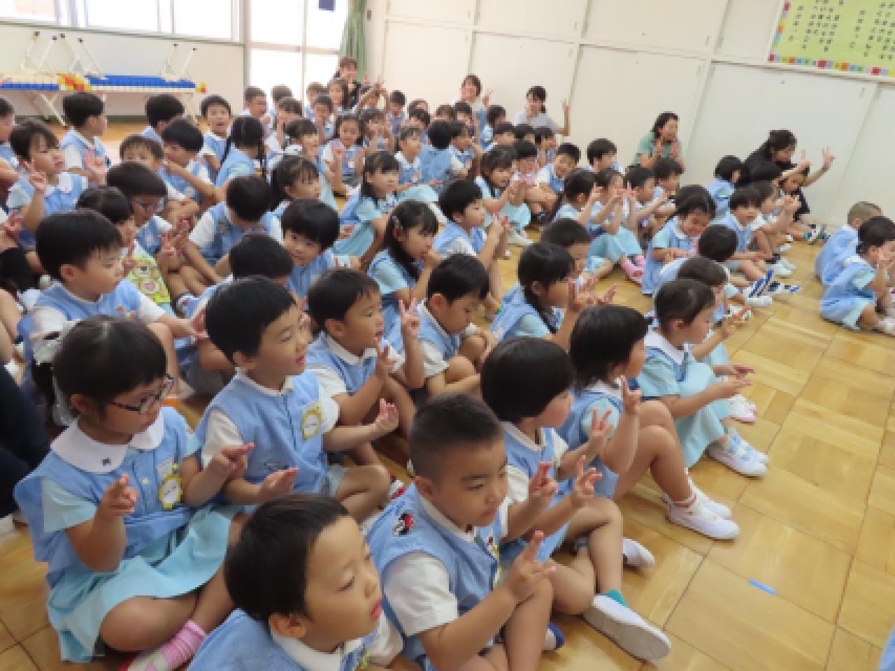始園式では、子どもたちと夏休みの振り返りと、「2学期も早寝・早起き・朝ごはん・あははと笑って心身ともに元気に過ごそう」と話をしました。