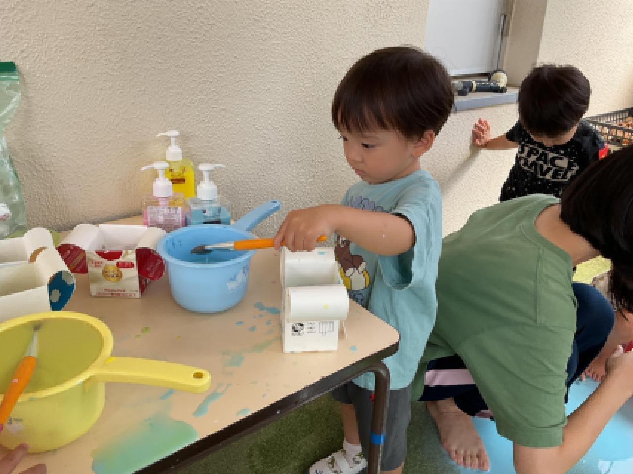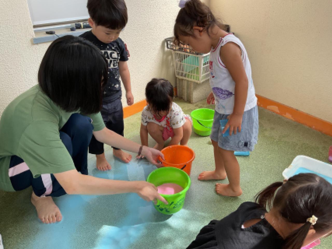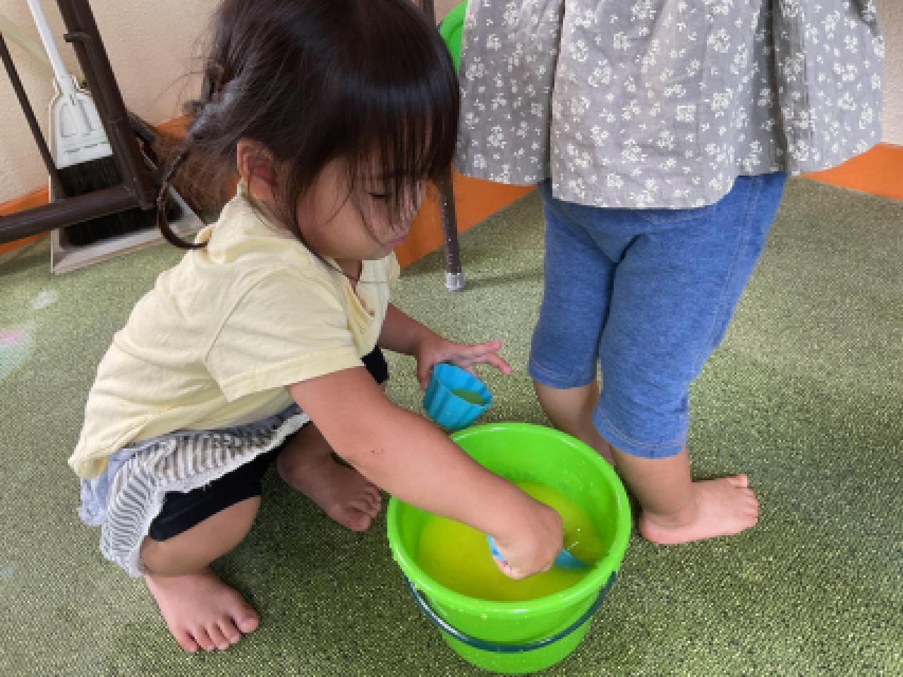 パシャパシャと水の感覚を楽しんだり、色んな色を作ったりとたくさん遊びました✨
