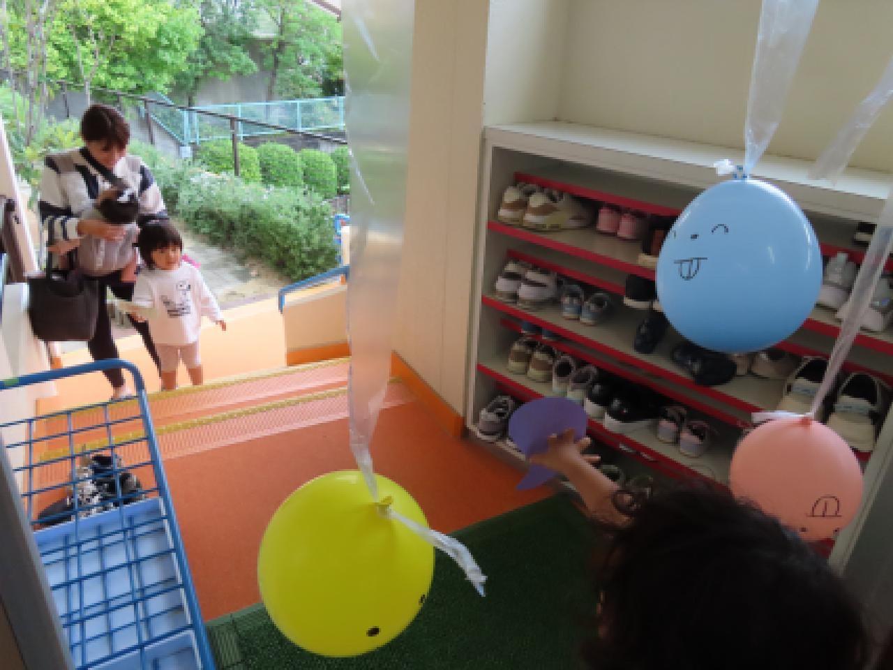 入り口で風船おばけちゃんが待っていました👻