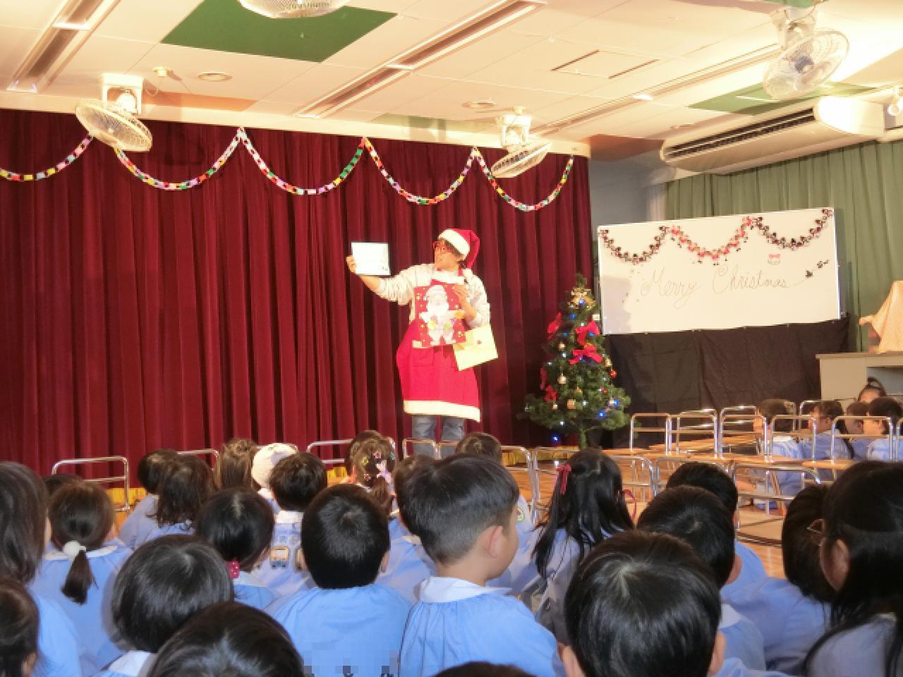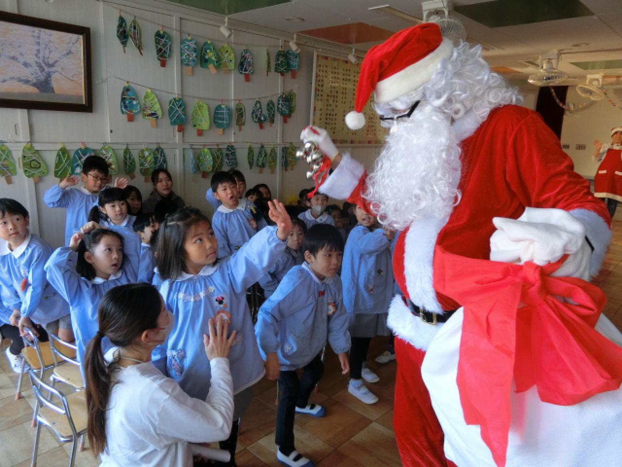この時期は大忙しのサンタさん、軽やかな足取りで、次の幼稚園へ。