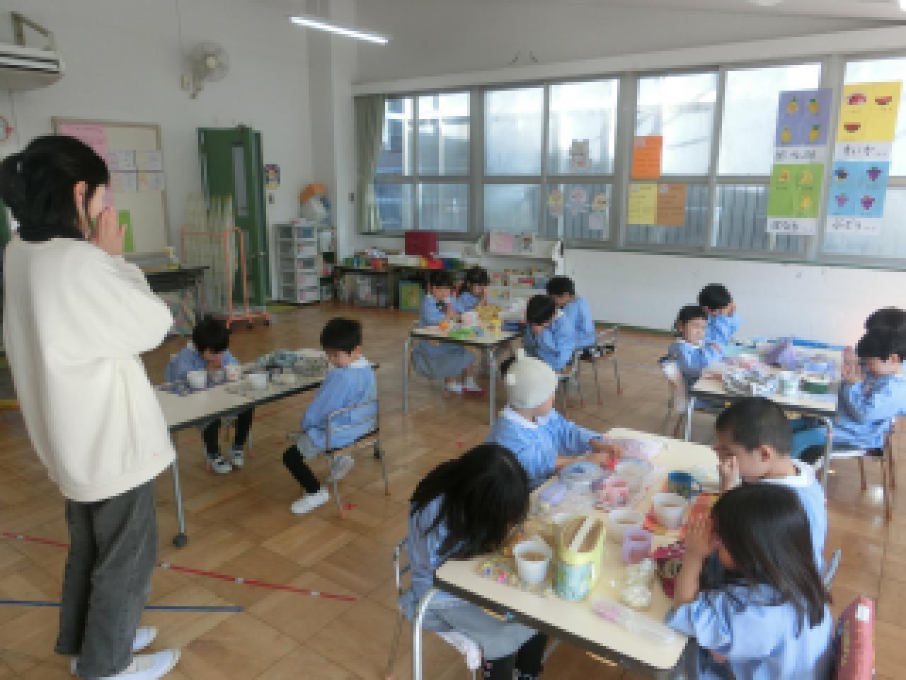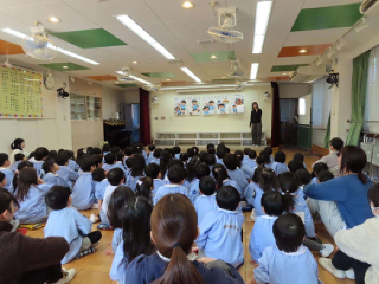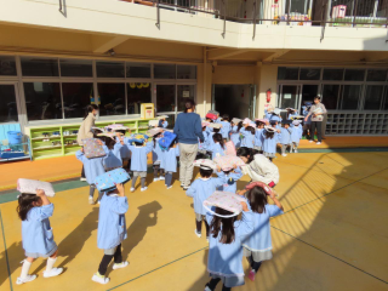 職員による人数確認、園舎確認を終え、避難訓練の約束などを一人ひとりがしっかりと考えられる時間を持ちました。