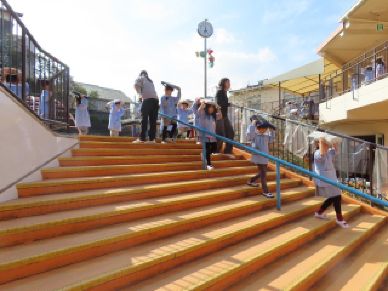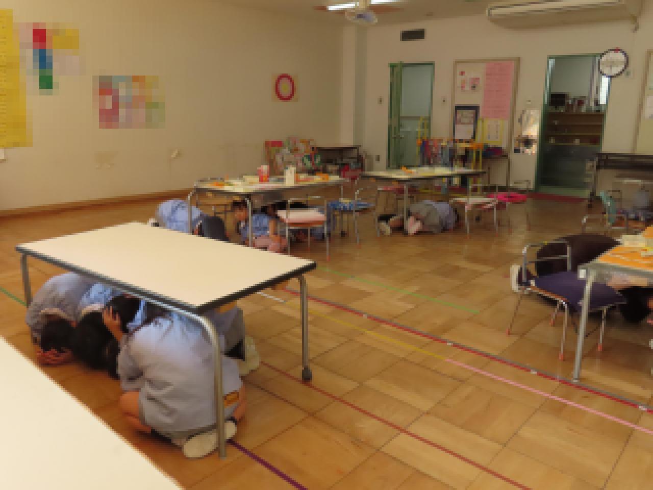 (起こってほしくはありませんが、もしもの時は園庭に避難します)