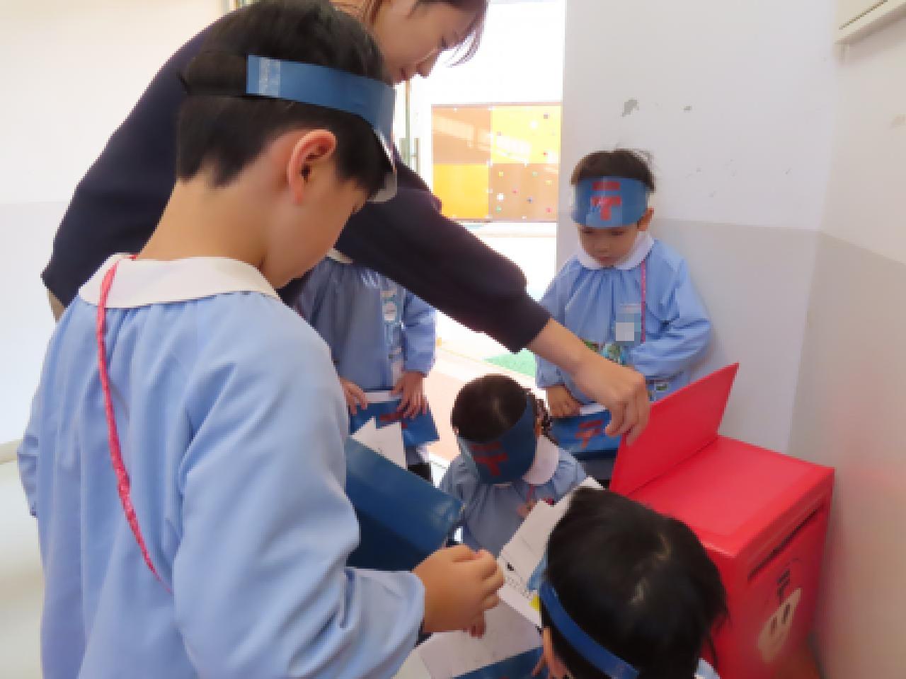 5日間、たくさんのハガキの販売→回収→仕分け→配達の大仕事を責任をもってやり遂げた年長組の郵便マンたち ありがとう! そして、お疲れ様でした!