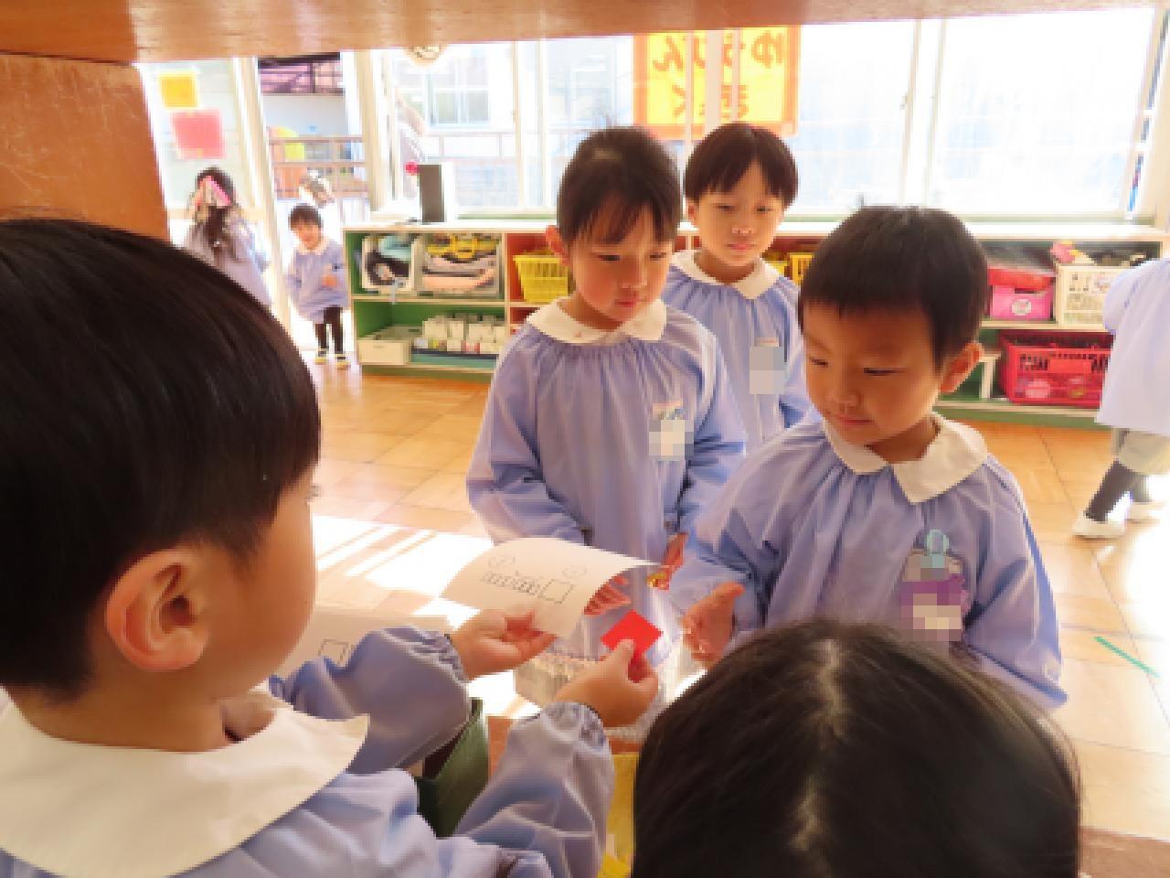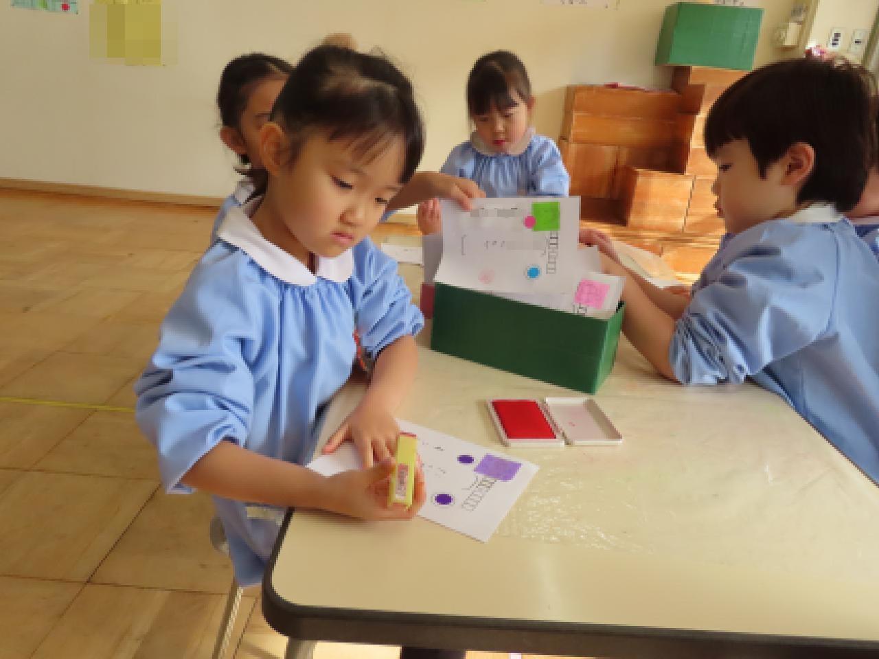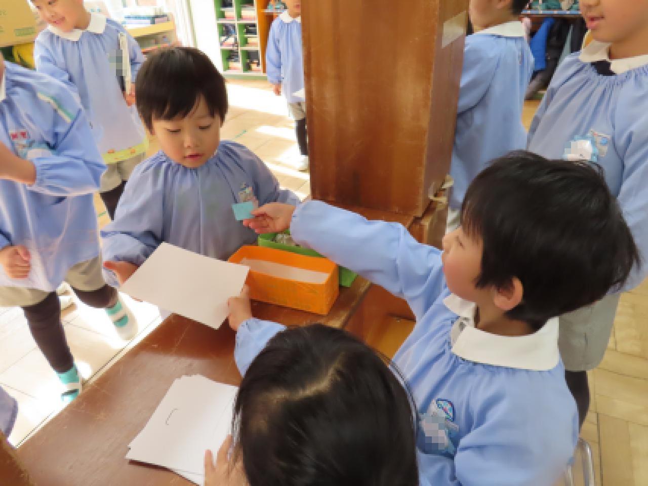 年長さんが郵便の仕事をする様子を見ていると、子どもたちだけの話し合いから、分担作業ができるようになっていてビックリしました。