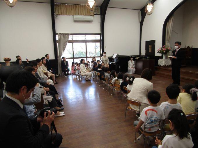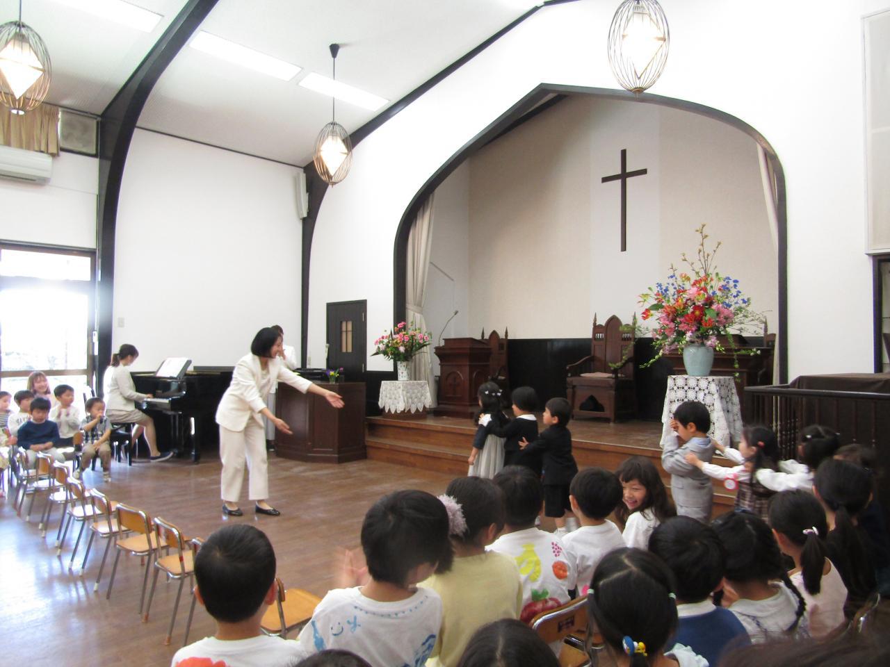暖かな日差しの中で入園式が行われました。