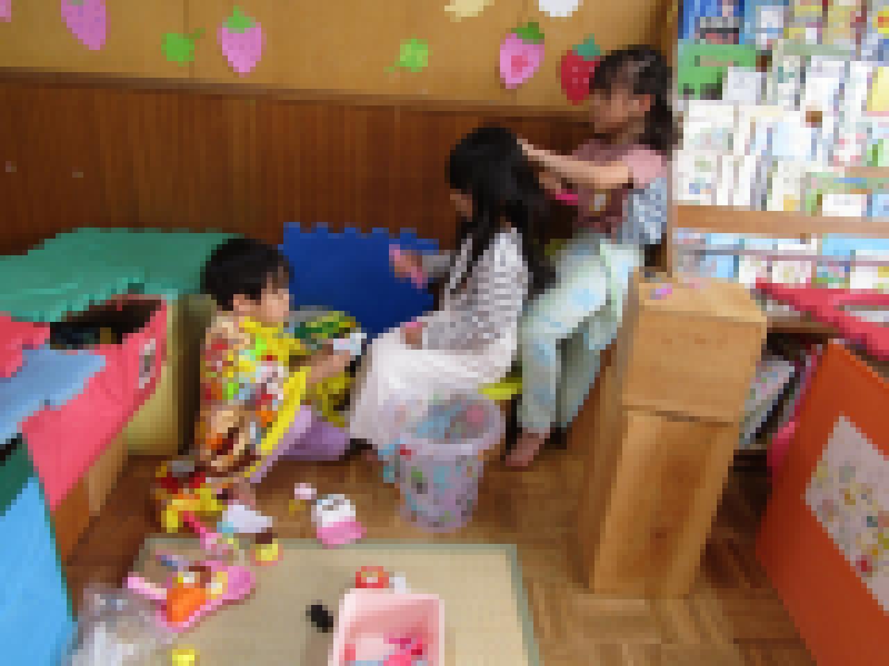 他のクラスや異年齢で楽しい時間を過ごしています。5月からは、年少組さんもご利用ができます。お友だちや先生と様々な経験をしたり、生活の中で人と関わりながら、心も体もみんなで大きく育ちますように・・・。