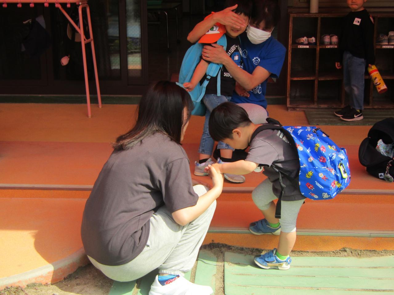 子どもたちをお祝いしてくれた桜から、紫陽花が似合う季節になってきています。門からお家の方とお別れをして勇気を出して登園して来るようになってきました。幼稚園は、子どもにとって最初の社会の入り口です。「自分でがんばってね」と保育者は後ろに引いて見守ると、年中・年長児が自然に助けてくれるのです。保育者よりも子ども同士の声掛けの方が安心するのか、泣き止むのも早いのです。