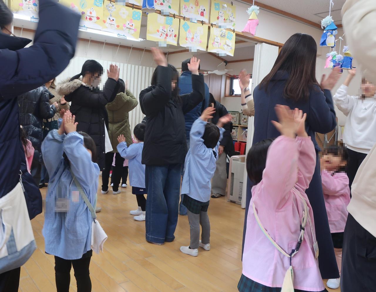 どのクラスもお家の方々と一緒に歌ったり体を動かす場面を作りました。