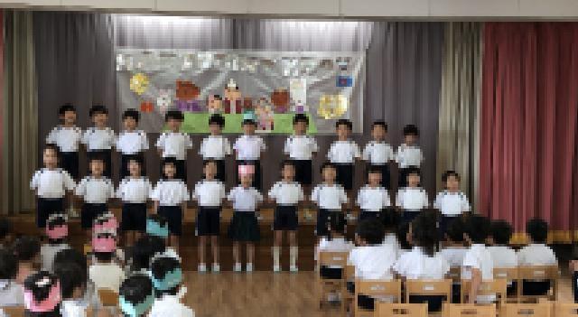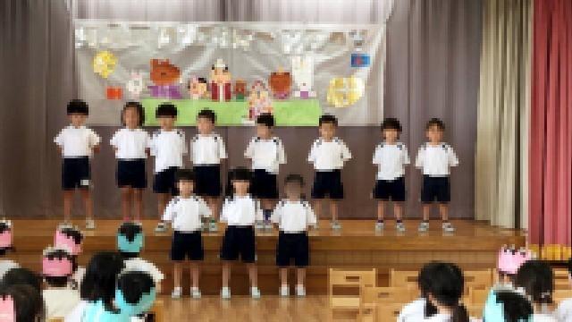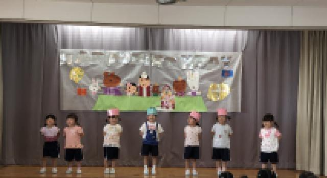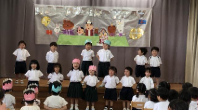 2歳児教室ひよこ組さんは、かわいいかくれんぼ・パンダうさぎコアラ・ドレミのうたをメドレーで発表しました。